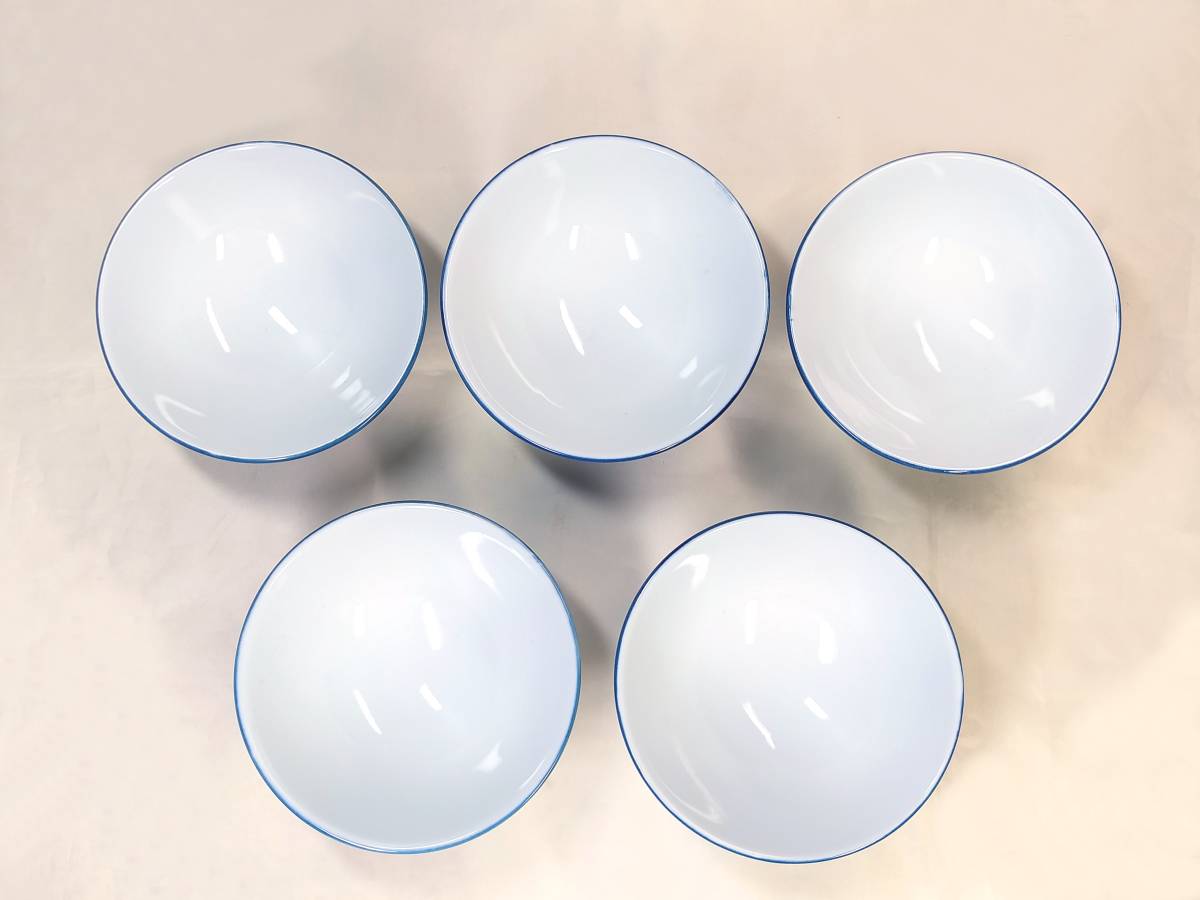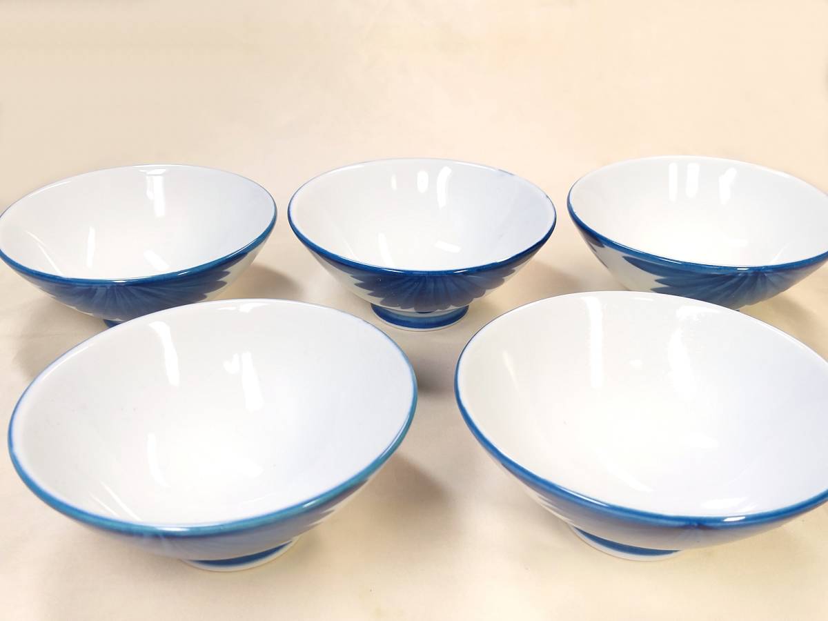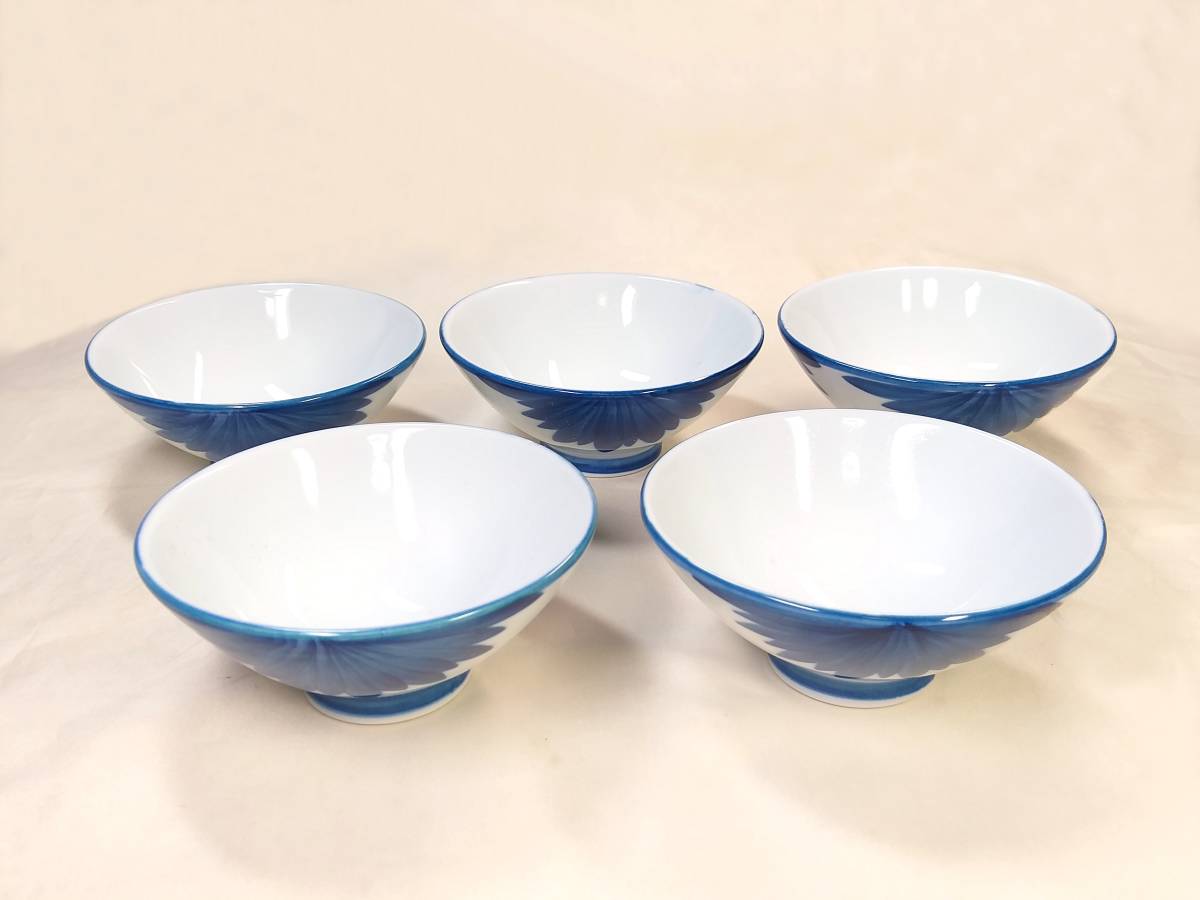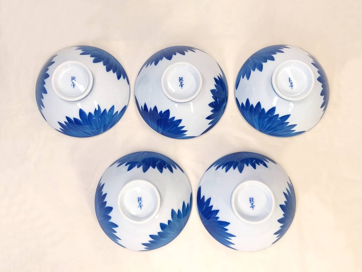 【壽】手絵茶碗『唐花紋』5客/組セット品 5客揃え●作者銘あり 日本製 和食器 盛り皿 居酒屋 和風 料亭 懐石 日本料理 新古品 No133