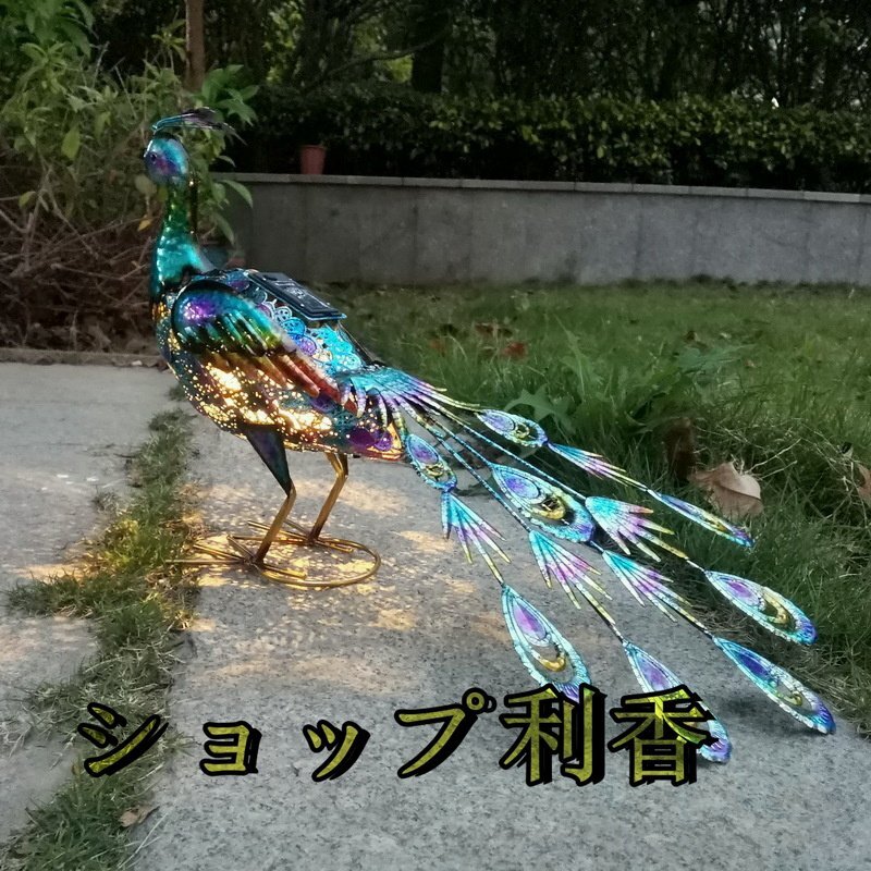 孔雀 クジャク ガーデンライト ソーラー ライト 太陽光 発電 おしゃれ 屋外 庭 置き型 置物 オブジェ インテリア モダン 鳥 動物