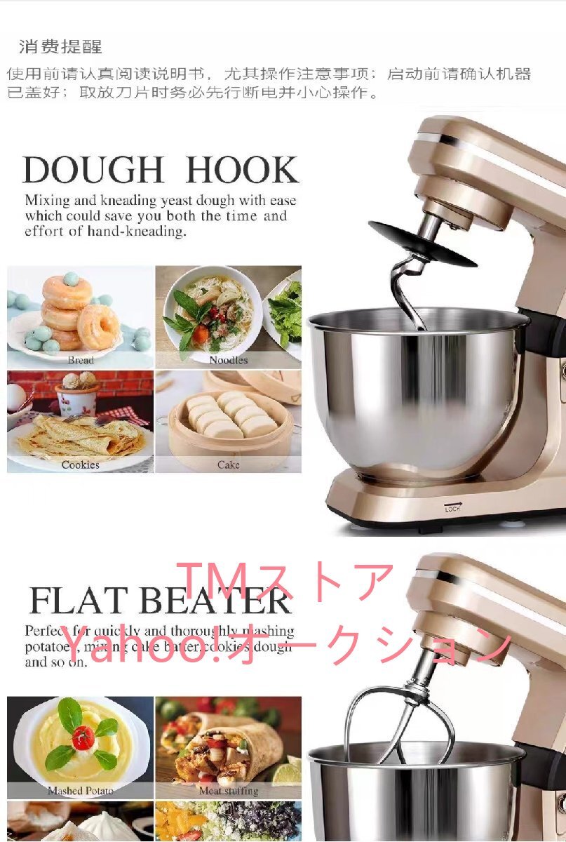 高品質スタンドミキサー 卓上ミキサー 5L大容量 3種類アタッチメント付き 業務用 家庭用 6段階スピード調節機能 パン生地こねやお菓