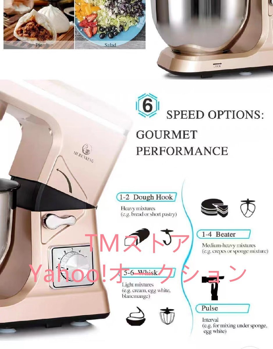 幅広い用途&使い方法:レバーを押すと、卓上ミキサーのヘッドが上がり、アタッチメント、ボウルとカバーをセットできます。食材をボウルに入れて速度ダイヤルを設置して完成。一台あれば、プロはもちろ、素人でも家庭でパンやお菓子作りや料理の創新にチャレンジします。家庭用業務用両方対応です。