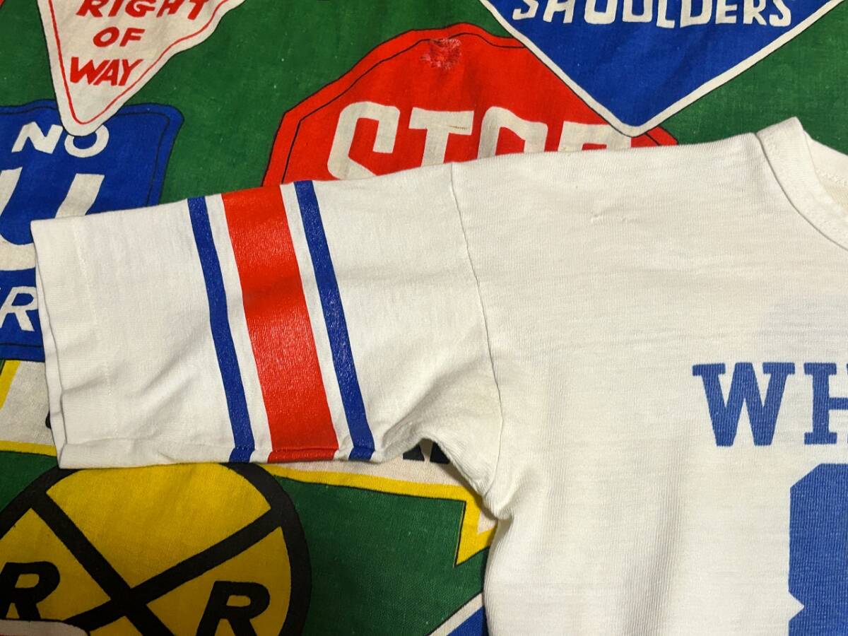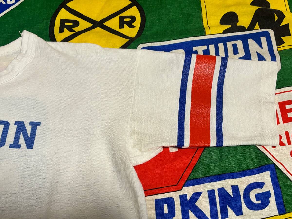 珍しいフロント部分のみが染み込みプリントの1枚で、これからのシーズンにもオススメな1970年代〜頃のビンテージナンバリングプリントTシャツです。
