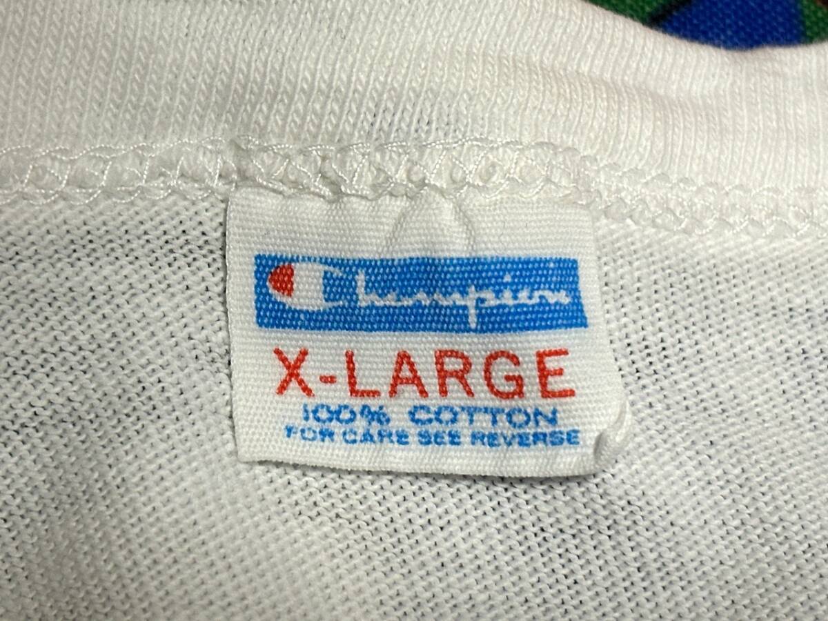 ☆珍しいプリントパターン☆Made in USA製アメリカ製ChampionチャンピオンビンテージナンバリングプリントTシャツ70s70年代バータグ染込XL