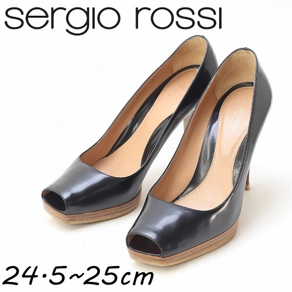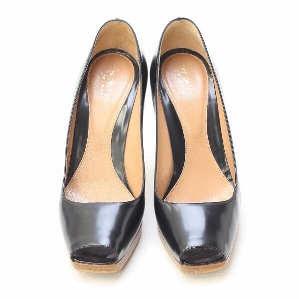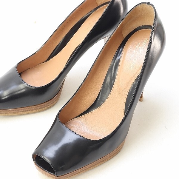 ◆Sergio Rossi セルジオロッシ レザー スクエアオープントゥ ヒール パンプス 黒 ブラック 38 1/2 | |