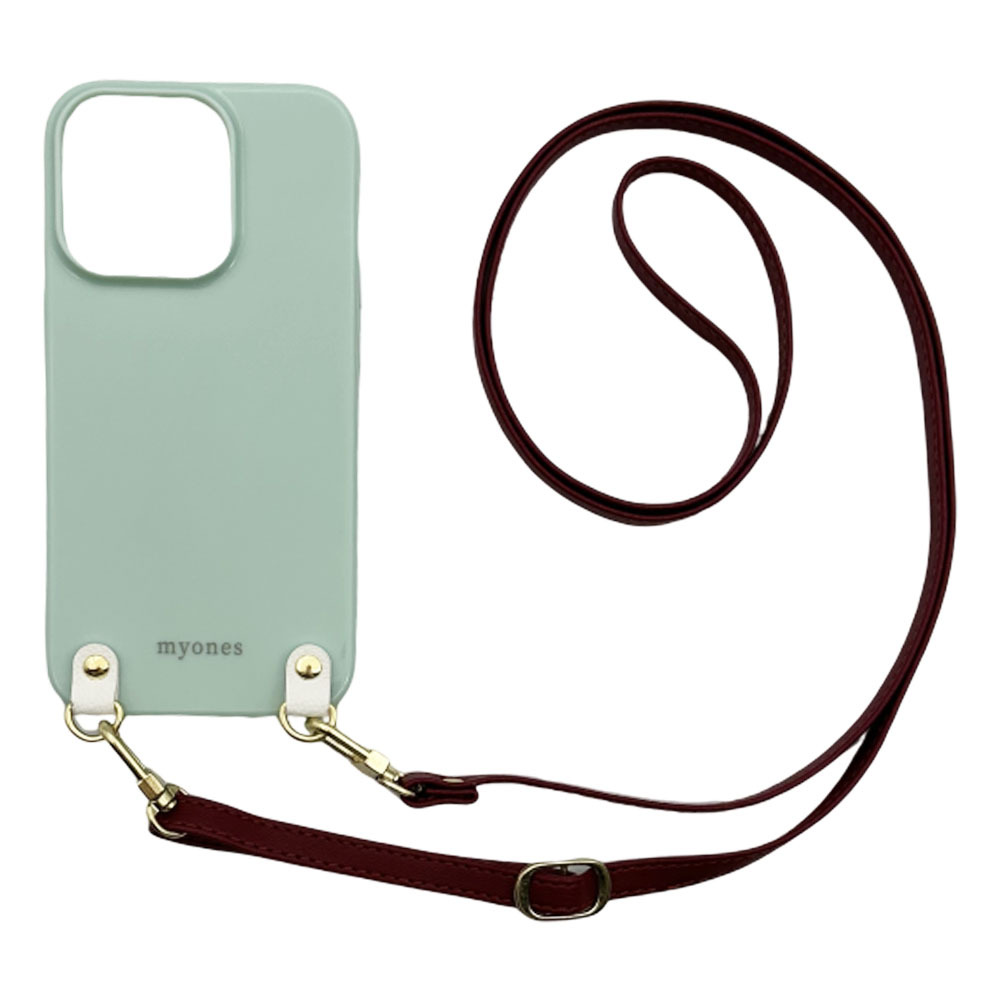 iPhone12 Pro Max スマホケース(くすみグリーン/ボルドー)ソフトケース ストラップ 肩掛け 首かけ