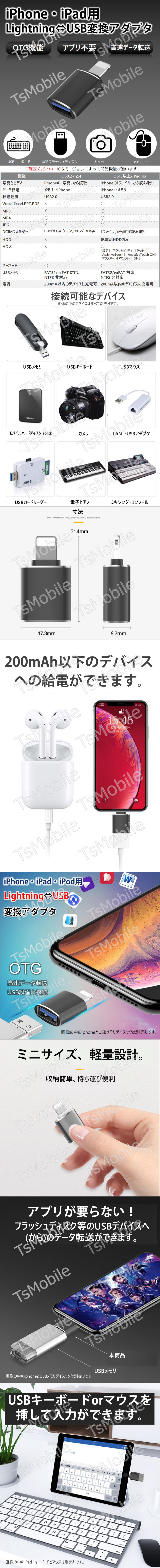 | 「本商品はios9.2以降のシステムのみ対応しますので、予めご了承ください。」 【Lightningコネクタ】iPhone,iPadで使うライトニングコネクタ式USBポート。microSDカード(TFカード)スロット。 【様々なシーンで大活躍】メモリーカードやデジタルカメラからiPadやiPhoneに簡単に写真やビデオを取り込めます。iPadやiPhoneにある写真もMicroSDカードに書き込みができます。 写真や動画、word/Excle/PPT/PDFなどのファイルも転送可能です。 【使用方法が超簡単】アプリのダウンロードなどが一切ありません。USBメモリを差し込むとiPadやiPhoneの「ファイル」というアプリケーションでメモリカードの内容が確認できます。 【対応カード】 Micro SD / Micro SDXC / Micro SDHC等(最大256GBまで)メモリーカード対応します。 【対応機種】IOSが9.2以降であり、ライトニングジャック搭載のiPhone11/iPhone11Pro/iPhoneX/iPhone8/iPhone8plus/iPhone7/7plusなど、iPad mini/Air/pro9.7/pro10.5/pro12.9に対応します。 |