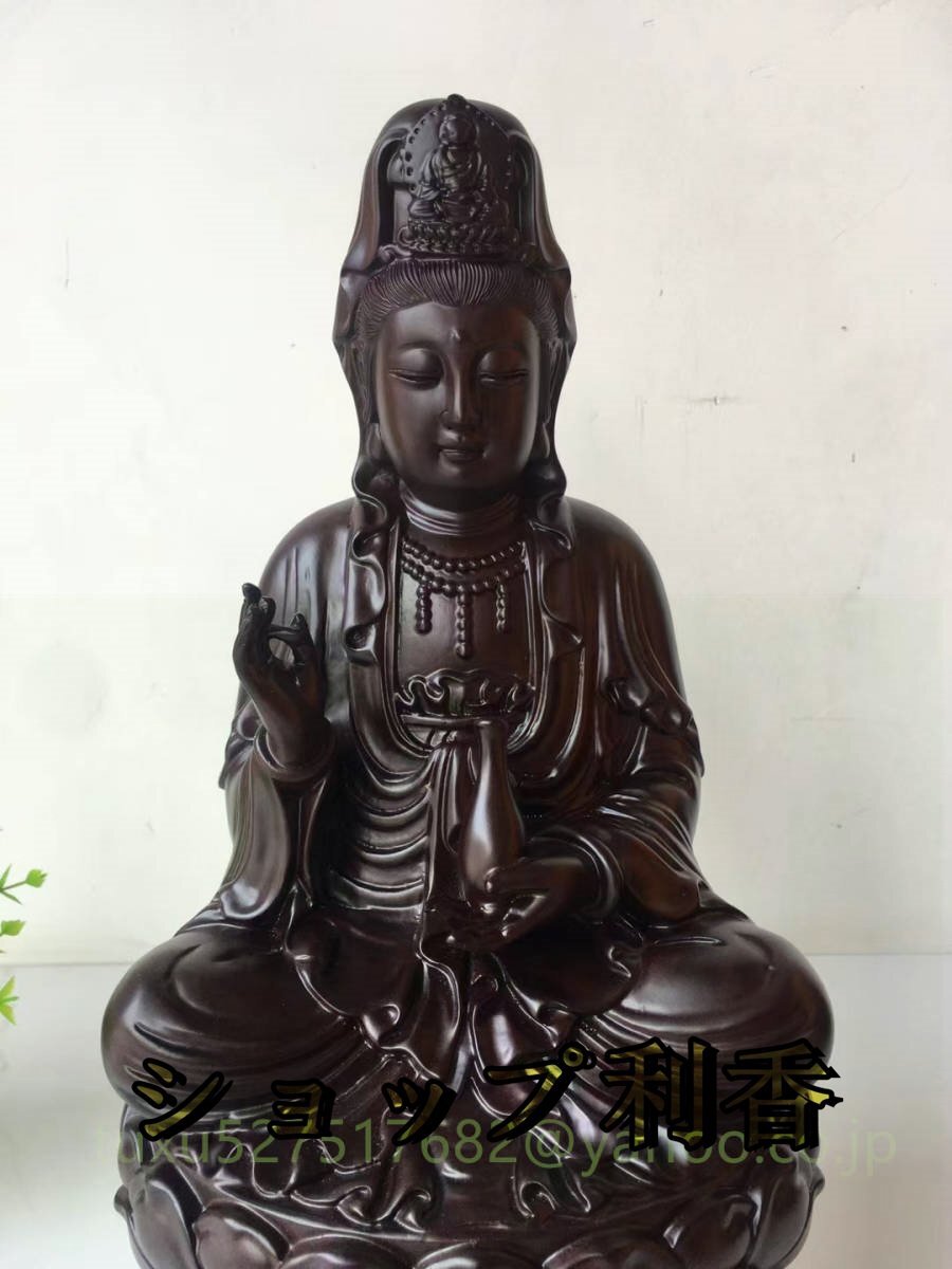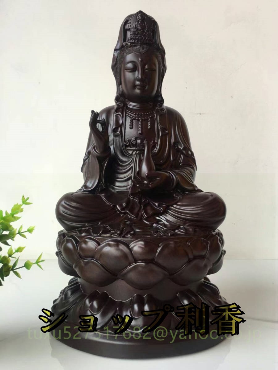 極上品 仏教美術 観音菩薩 木彫 美術品 観音菩薩像 仏像 置物 精密彫刻 大型高40cm