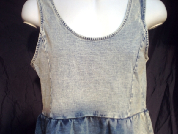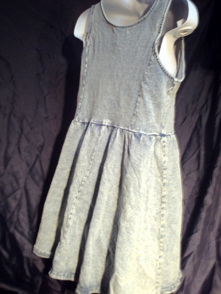 肩タンクで胸下切り替えありで裾可愛いフレアーなワンピースになります。とてもやわらかな素材で伸縮ありでかぶりタイプで着ていただきやすいと思います。インナーにTシャツなども・・・1枚でも・・・色落ち加減も程よくキュート