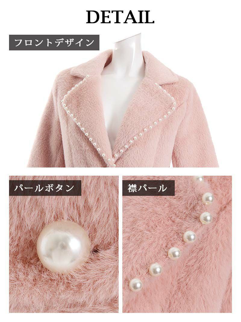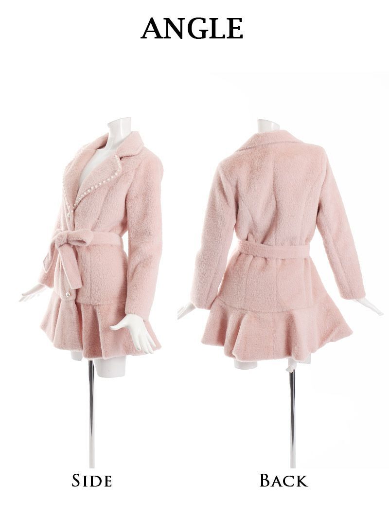 お襟大き目テーラードで縁にパールが沢山付いていてフロント4個大粒のパールボタン付きで着ていただけて裾フリルになっていて