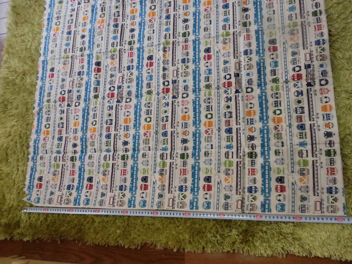 ****   新幹線・電車柄の生地 白系色 約110㎝×2メートル   ****   (2362)