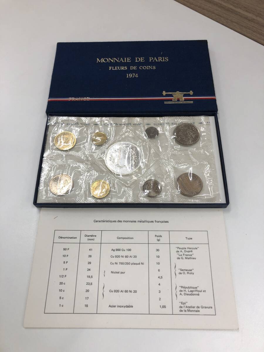 | フランス 1974 コインセット FLEURS DE COINS アンティーク コイン シルバー 銀貨 | |