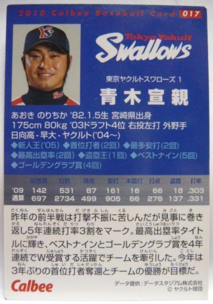カルビープロ野球カード2010年#017【青木 宣親(東京ヤクルト スワローズ)】平成22年チップスおまけ食玩トレーディングカード【中古】送料込