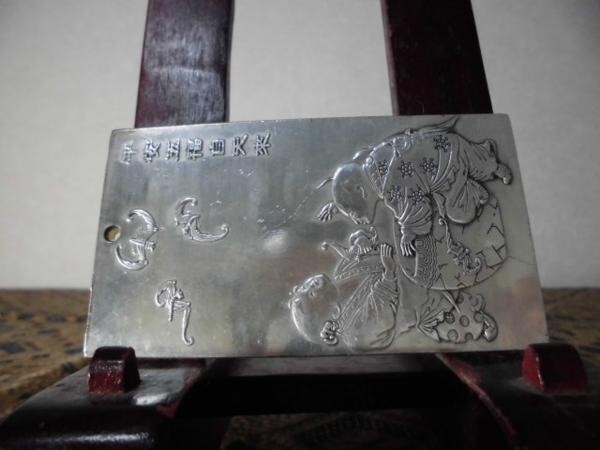 【商品説明】洋銀(純銀ではありません)製札。皿立ては付きません。【サイズ】9.1×5.1センチ【平成27年8月26日出品】