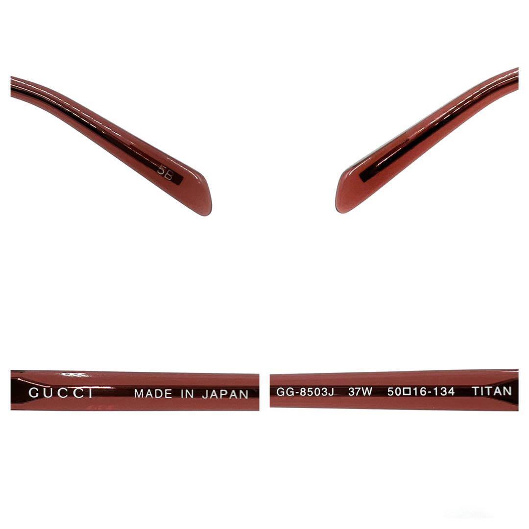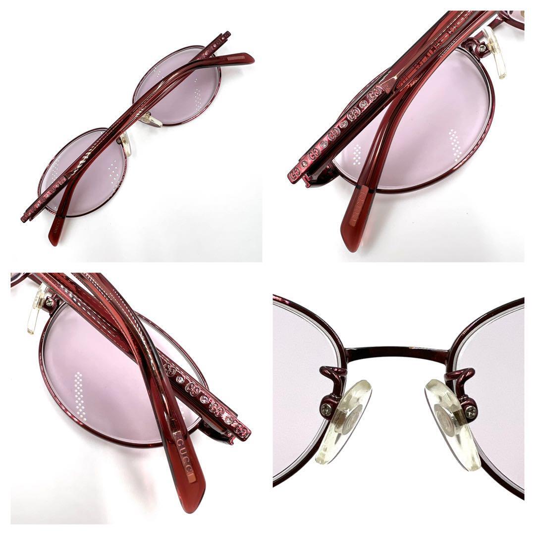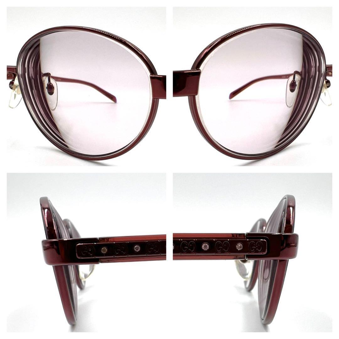 メガネ 眼鏡 サングラス アイウェア 度入り ラインストーン サイドロゴ ワンポイントロゴ オーバル フルリム GG-8503J 37W 5016-134 ケース付き