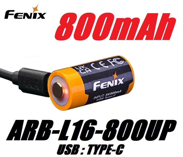 FENIX 800mAh リチウム バッテリー ARB-L16-800UP TYPE-C【新品】16340 CR123 RCR KEEP POWER KEEPPOWER surefire solarforce 電池 充電