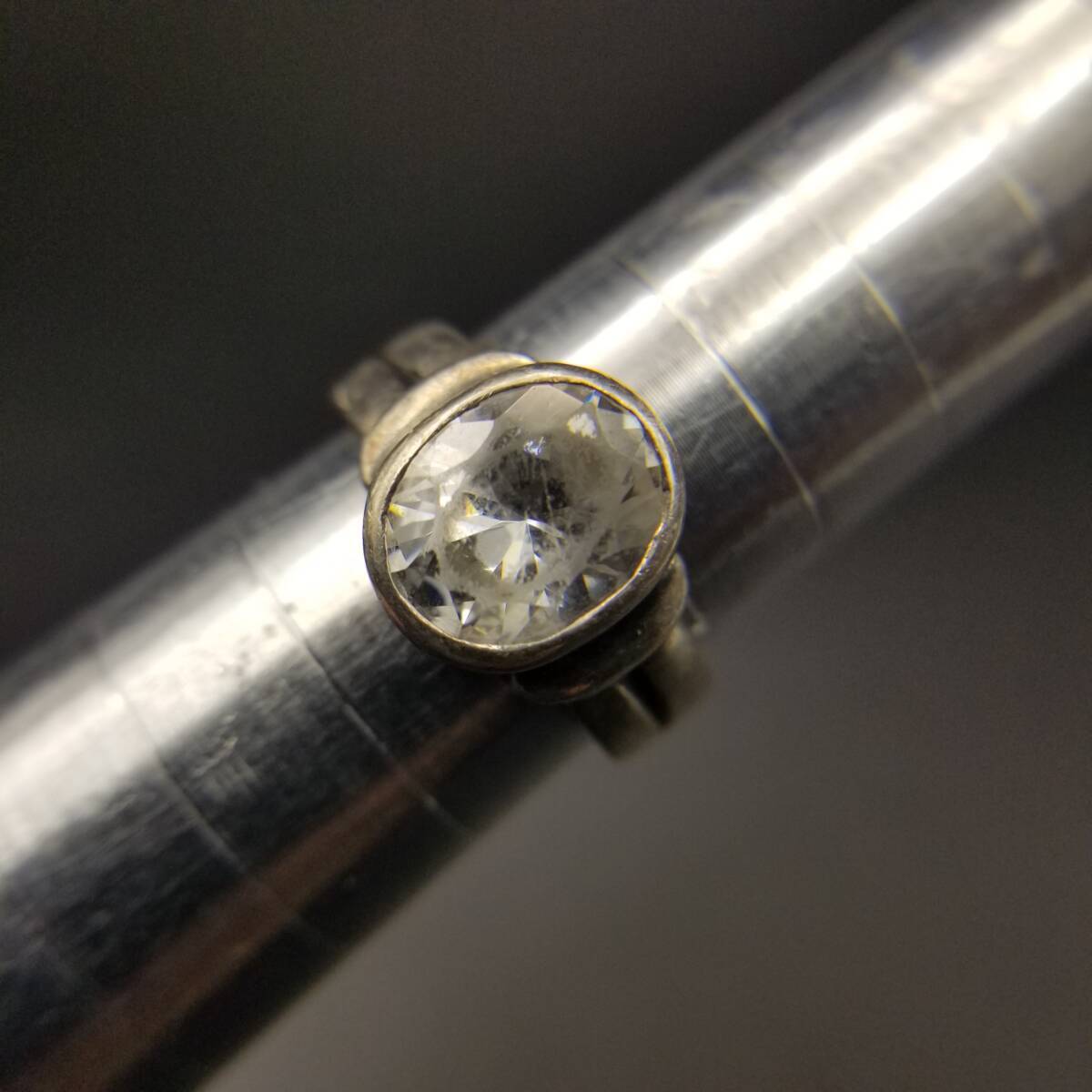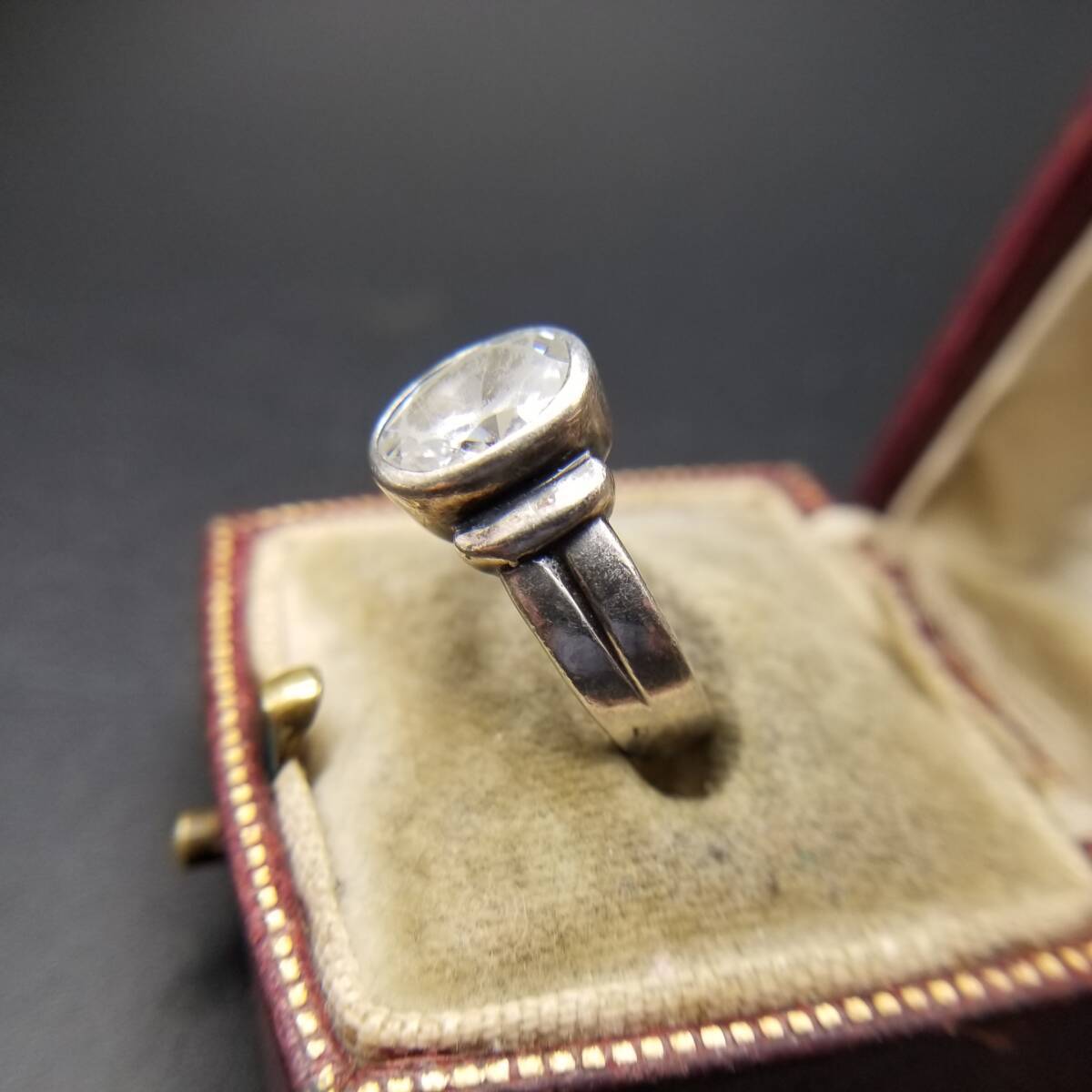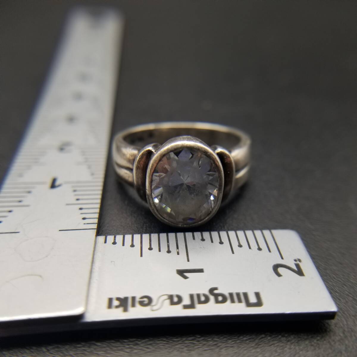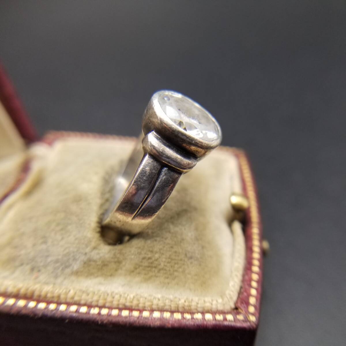 クリア オーバル ソリテール ダブルライン 925 シンプル ヴィンテージ シルバー リング 指輪 ジュエリー 輸入 Y14-W