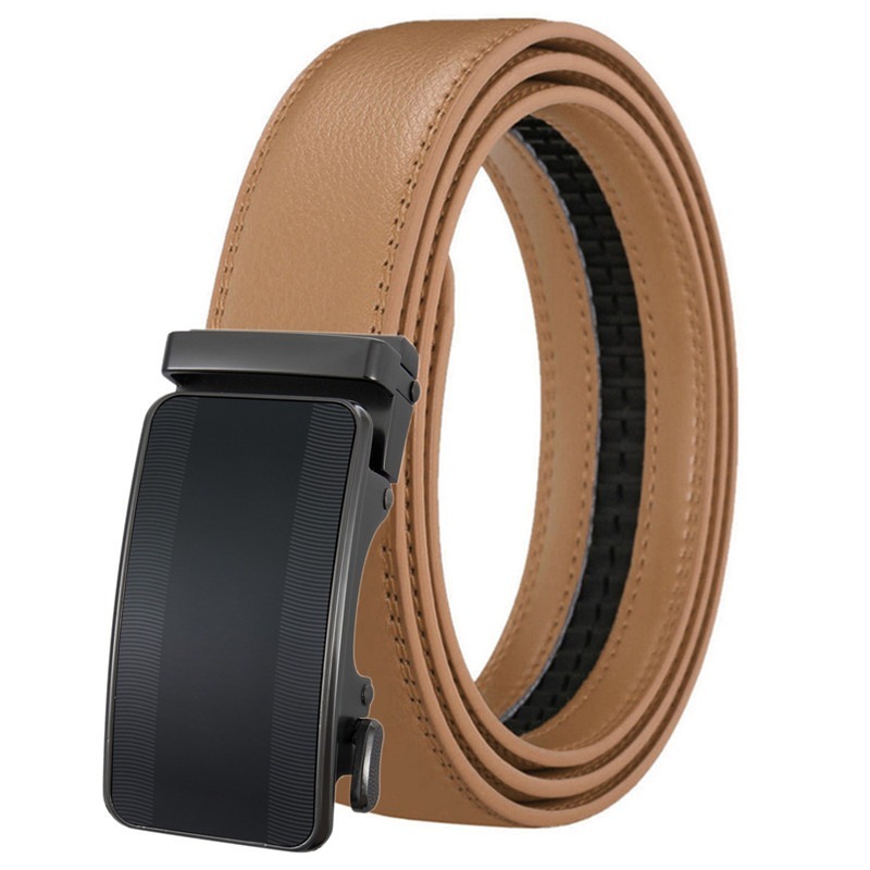 《 送料無料 》 レザーベルト メンズ ベージュ 茶 フリーサイズ 新品 定番 人気 未使用 オートロック バックル 本革 ビジネス 【PN2285】