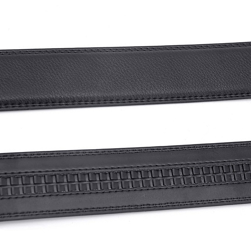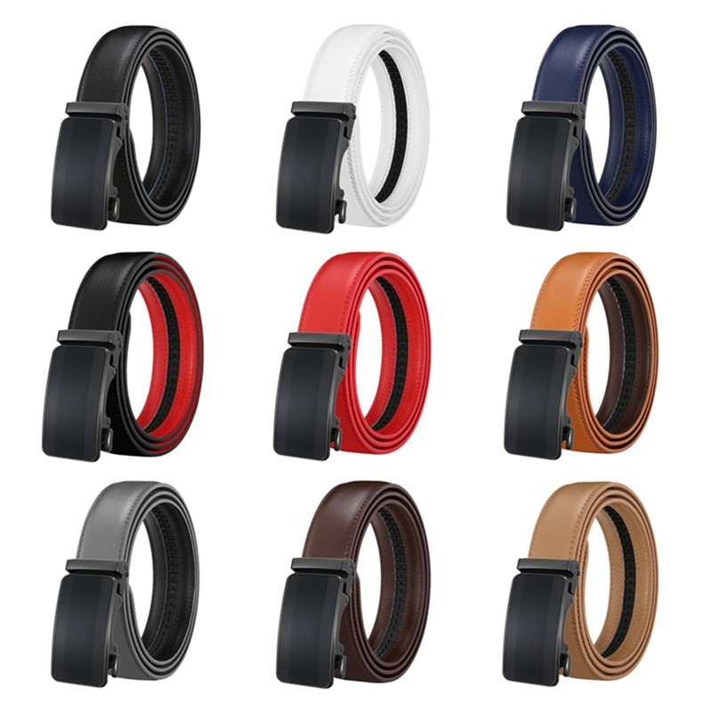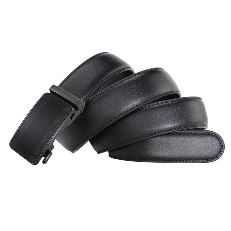 ブラックカラーのバックルが存在感ある印象のオートロックレザーベルト。