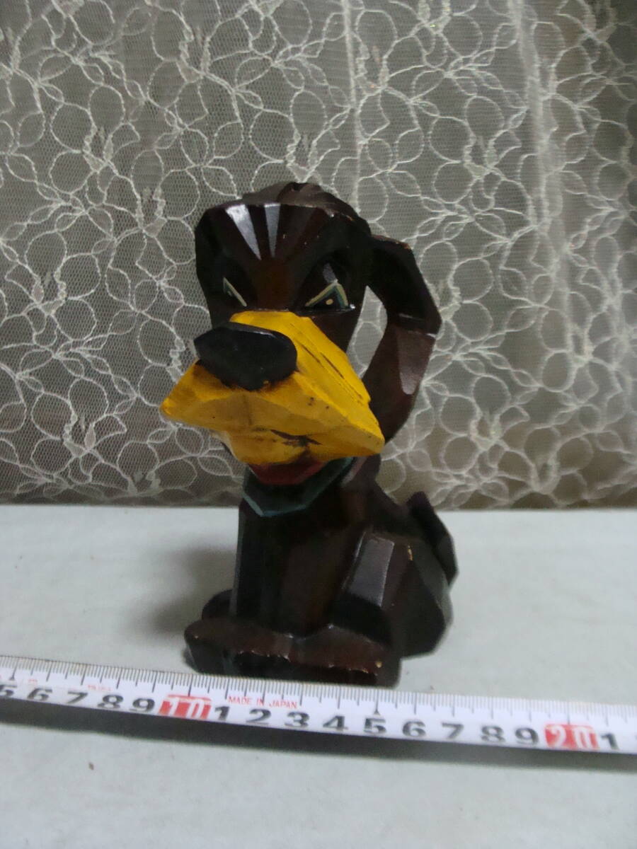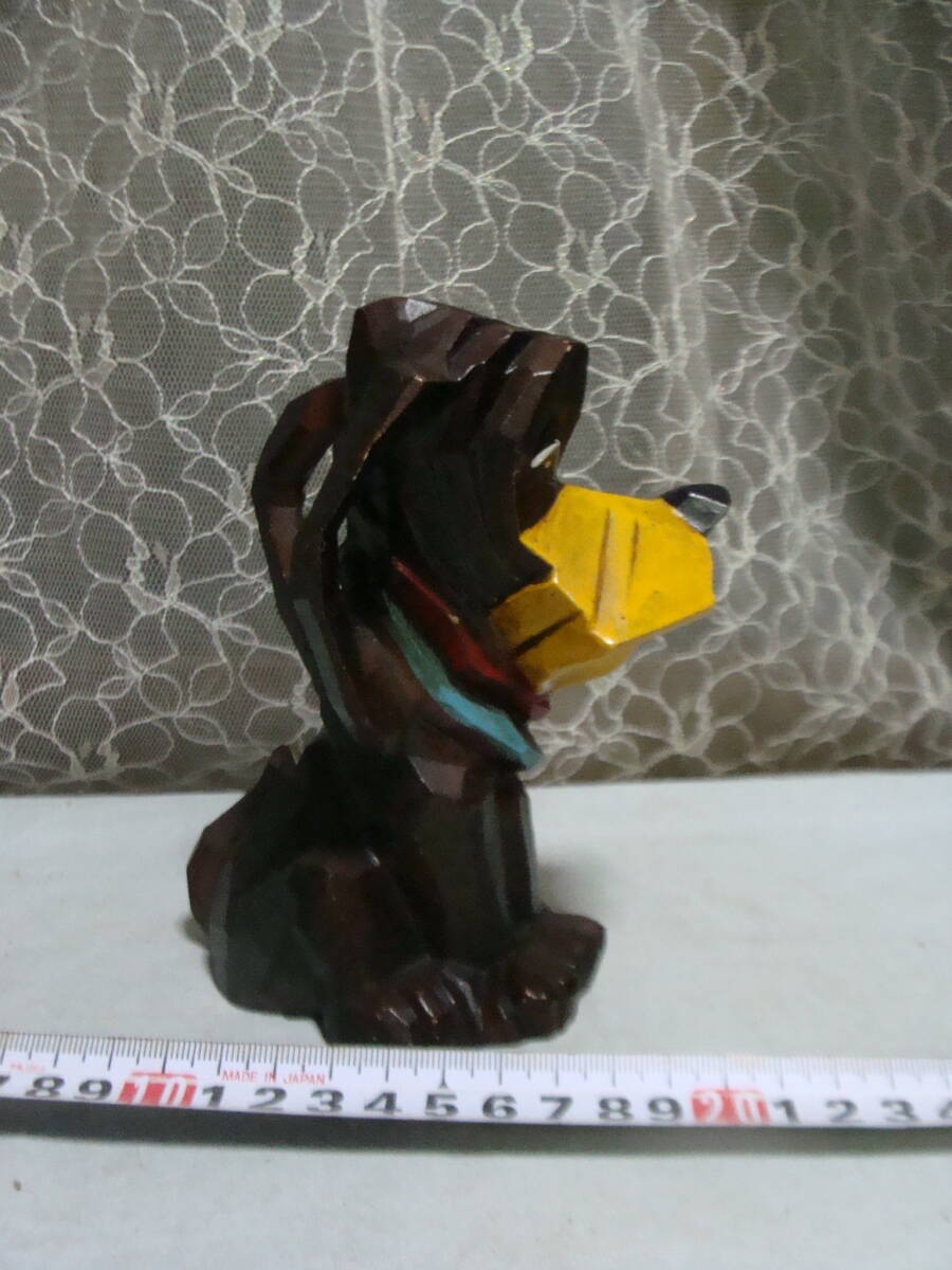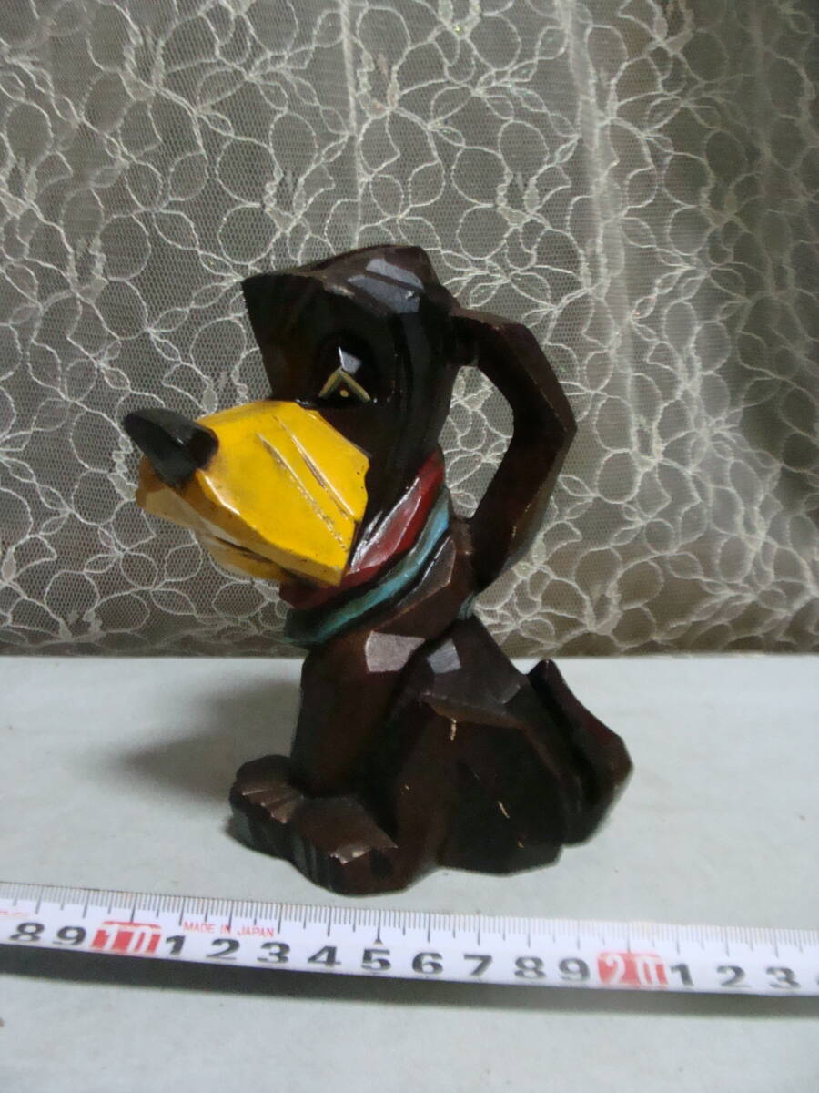 犬の貯金箱 木彫り風 置物 陶器製 昭和レトロ