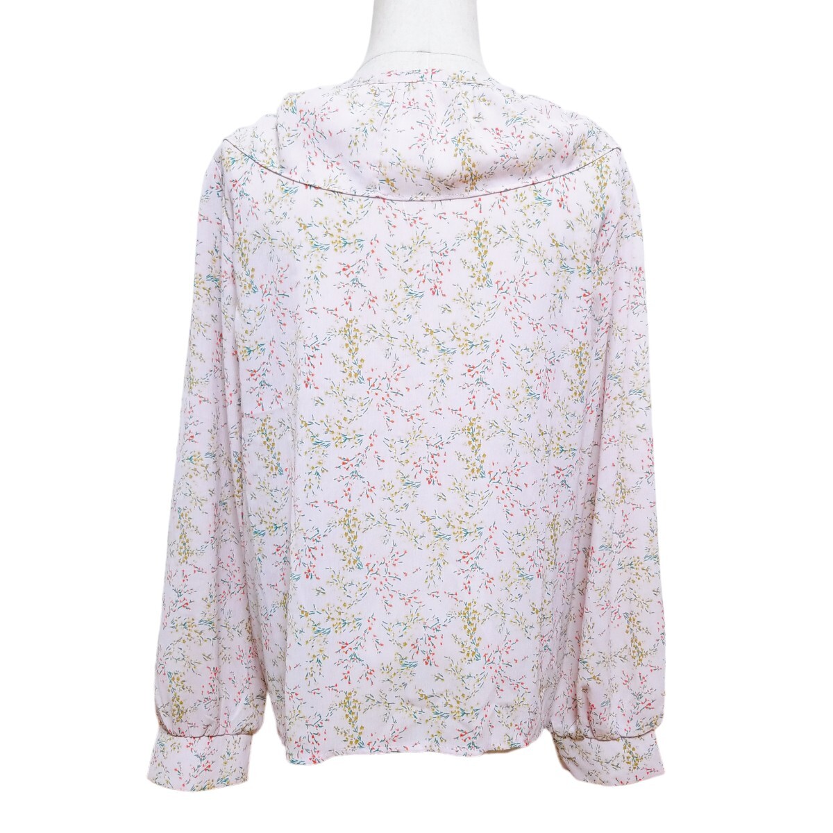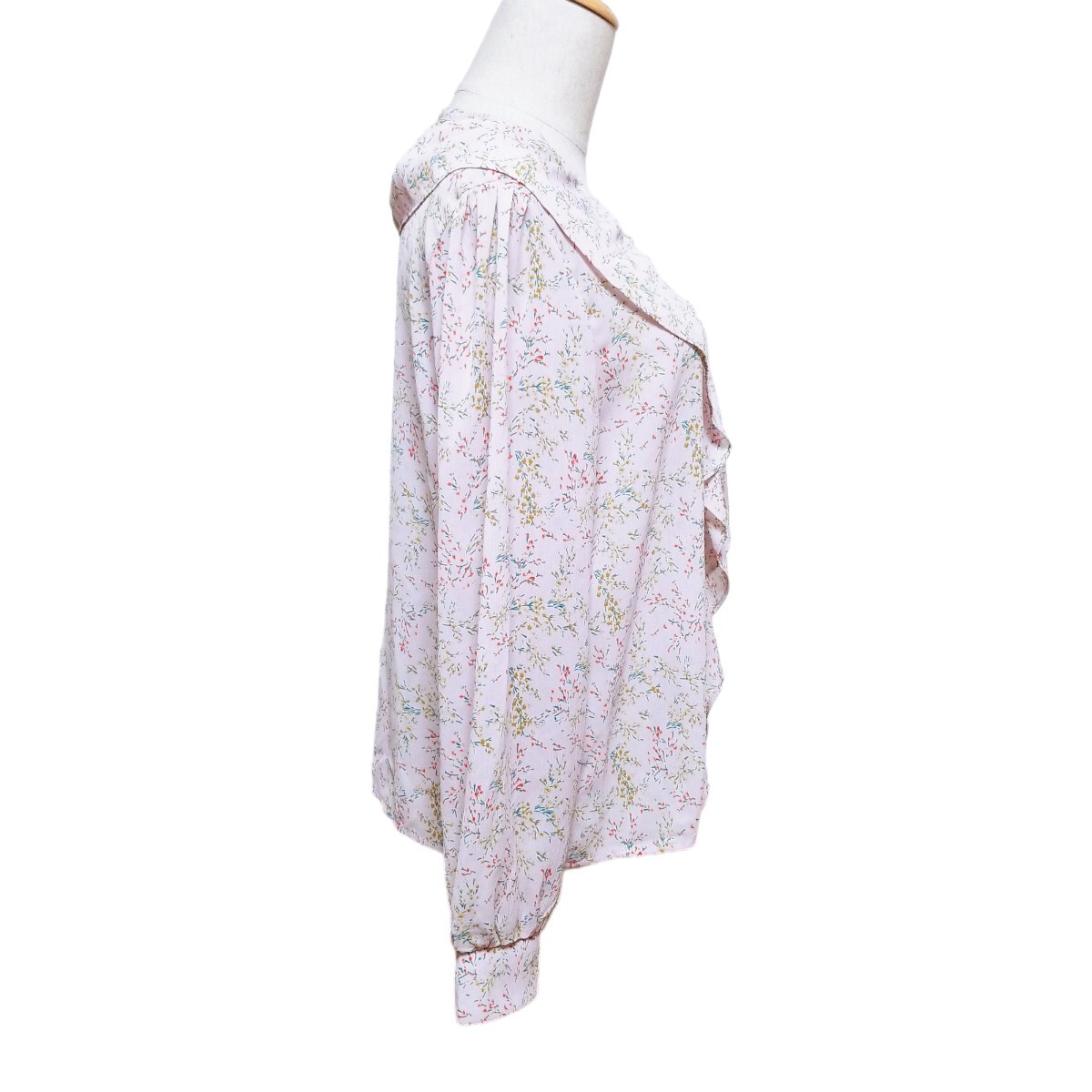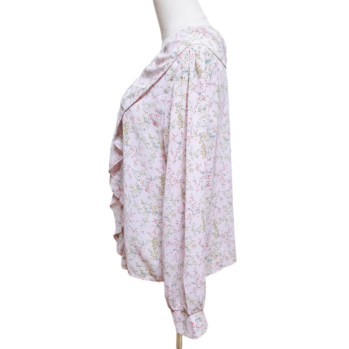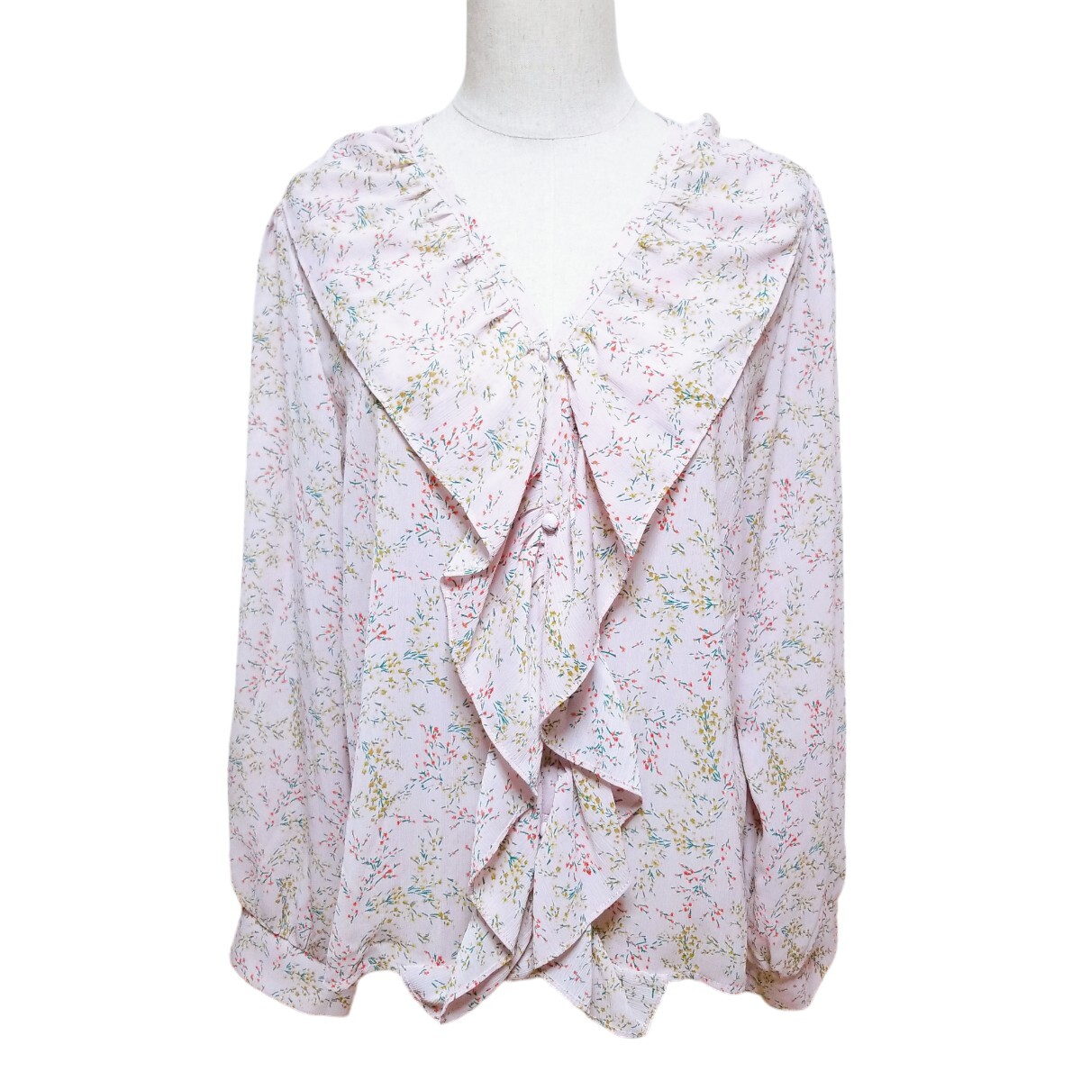 送料無料★美品★Y1436 Grace & Chili シアー シフォン フリルブラウス シャツ 長袖 レディース XL ピンクパープル 花柄 透け感 体型カバー