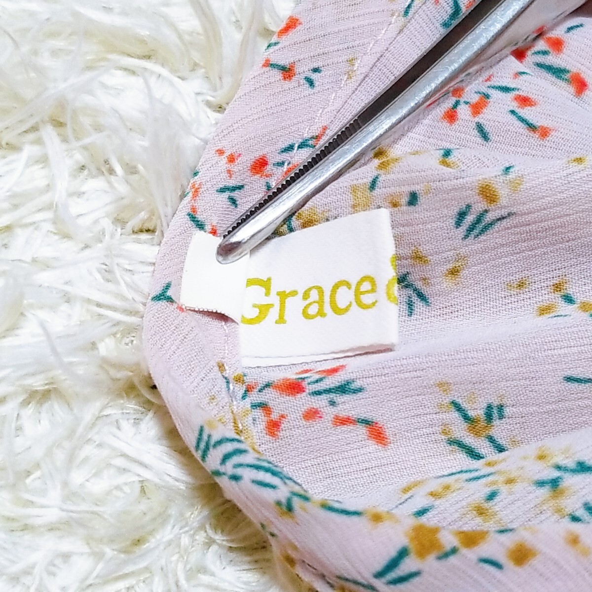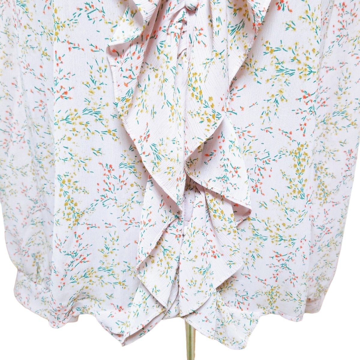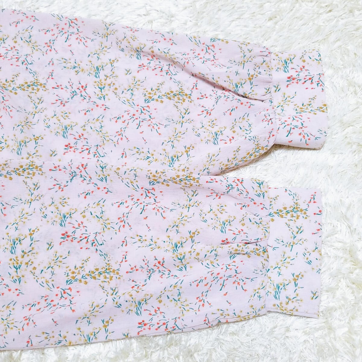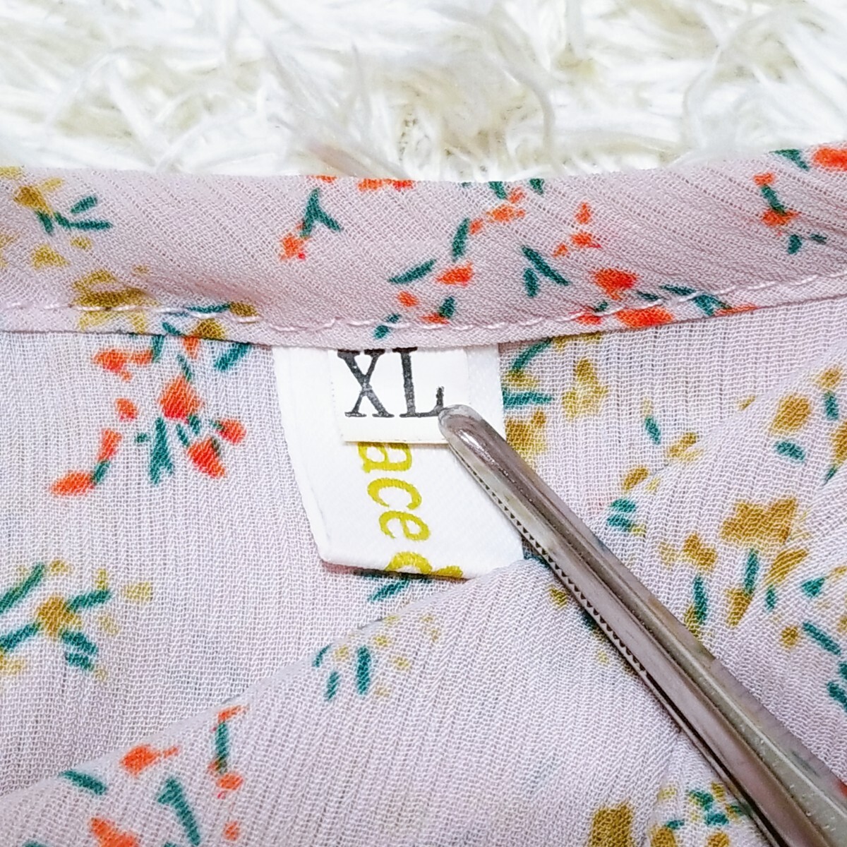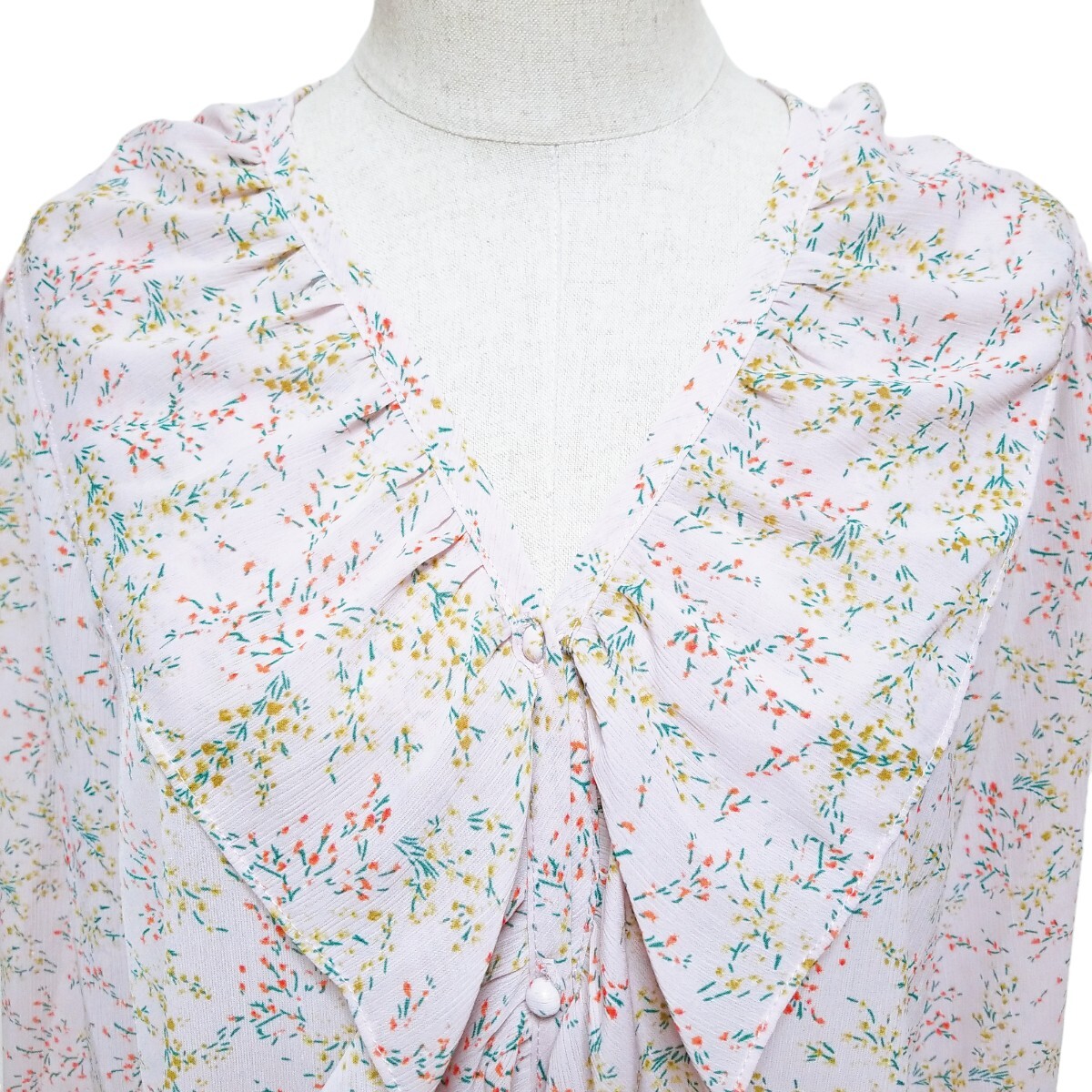 送料無料★美品★Y1436 Grace & Chili シアー シフォン フリルブラウス シャツ 長袖 レディース XL ピンクパープル 花柄 透け感 体型カバー