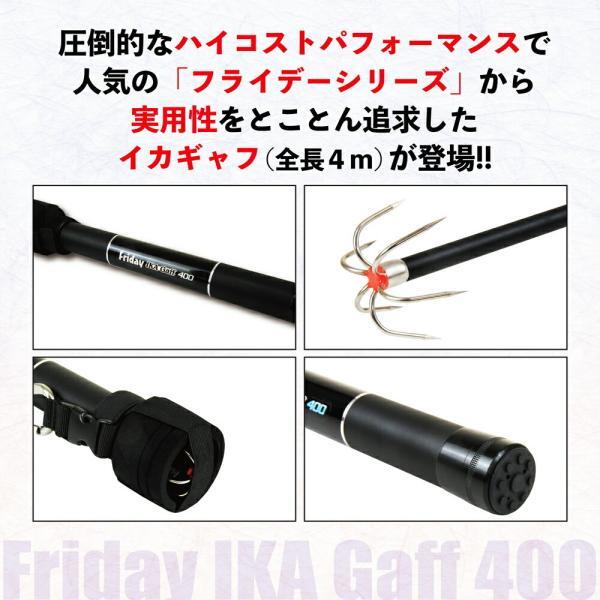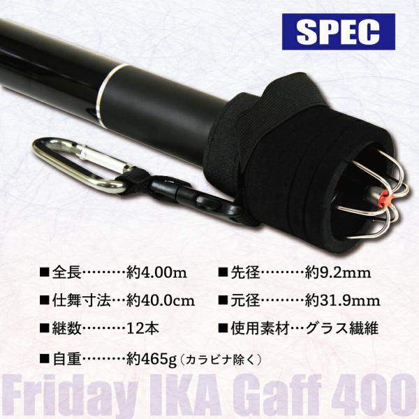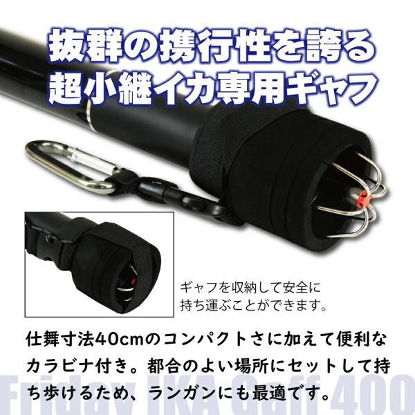 持ち運びに便利なコンパクト仕様の振り出し式イカ専用ギャフで、全長4mながら仕舞寸法は約40cm。携行の際にかさばらず、機動力を妨げません。