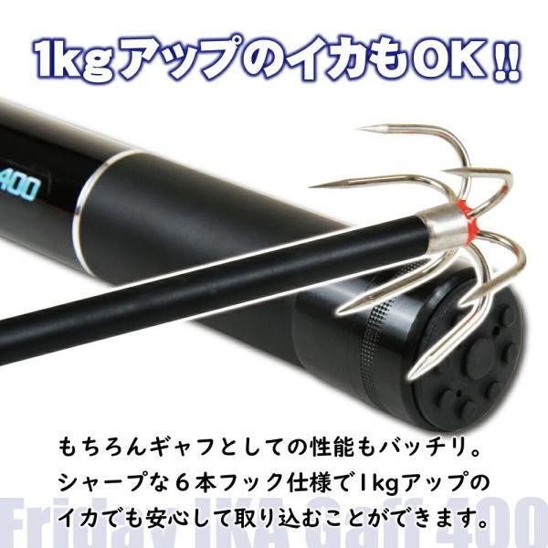 もちろん、ランディングツールとしての性能も秀逸。先端はシャープな6本フック仕様で1kgクラスのイカでも安心して取り込むことができます。