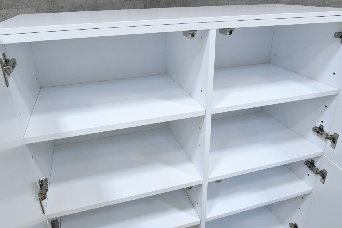 引き出しやボックスなど組み合わせ次第でどの様な機能も備えられる便利なキャビネット。