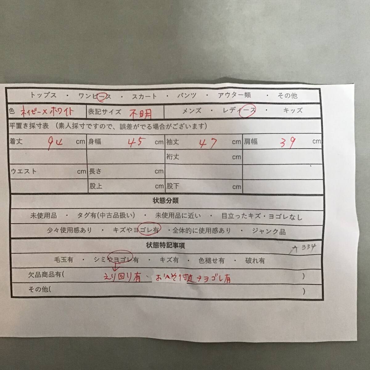 ・衣料品はたたみシワがある場合がございます。