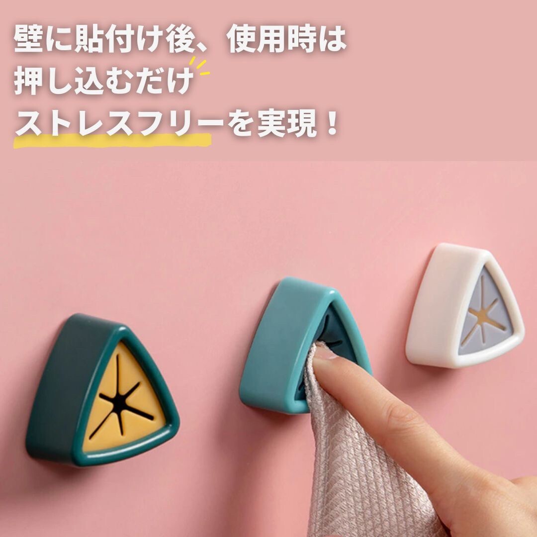 【4個】【ホワイト】タオル ホルダー トライアングル 選べる4カラー 4個セット ワンタッチ タオルハンガー 布巾かけ 布巾掛け