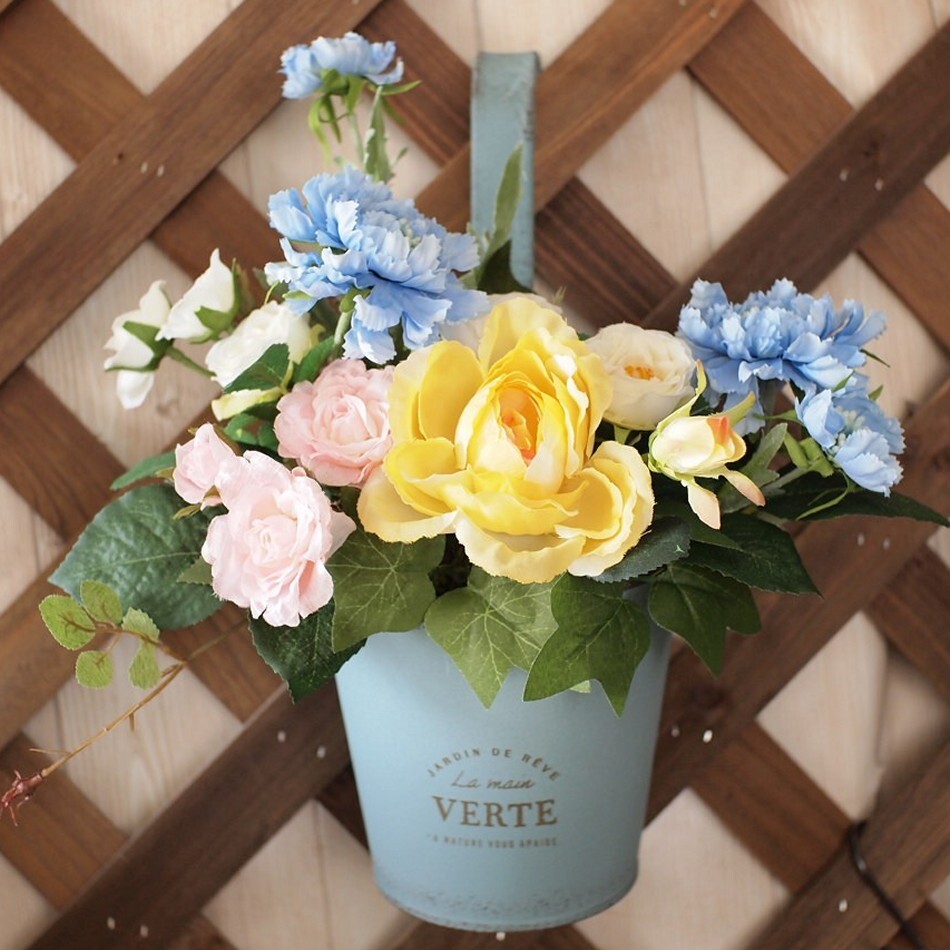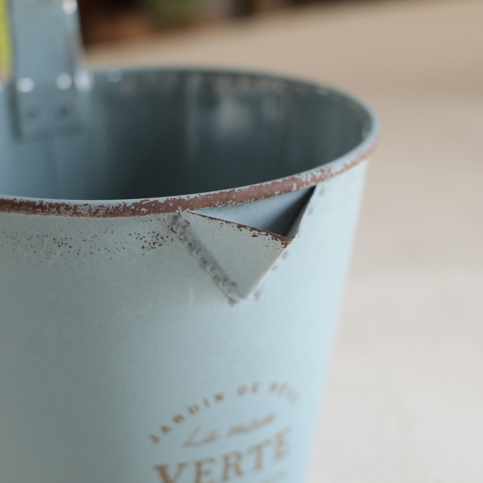 シンプルなブリキ素材のポットは、壁やフェンスに取り付けるだけで、簡単におしゃれな空間が完成します。