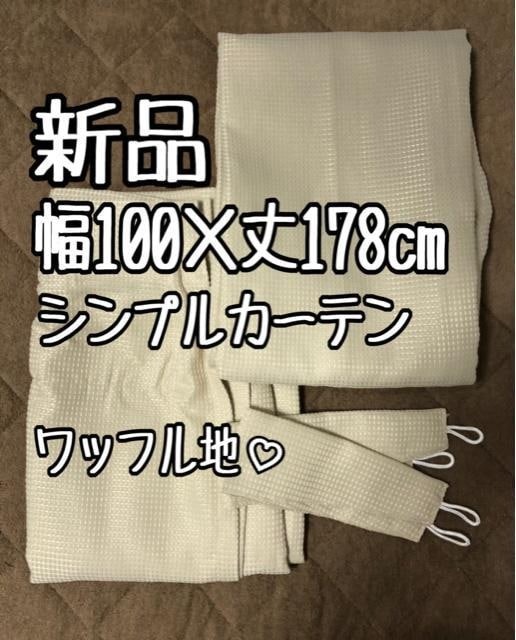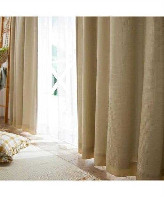 新品☆幅100×丈178㎝2枚ベージュ系シンプル無地ワッフルカーテン☆a337