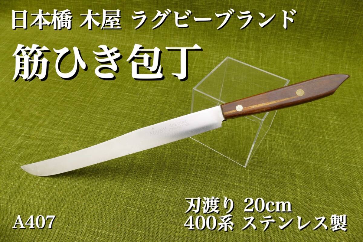 【A407】 日本橋 木屋 RUGBY ラグビー ブランド 刃渡り 20cm ステンレス 包丁 筋引き包丁? 長期保管品