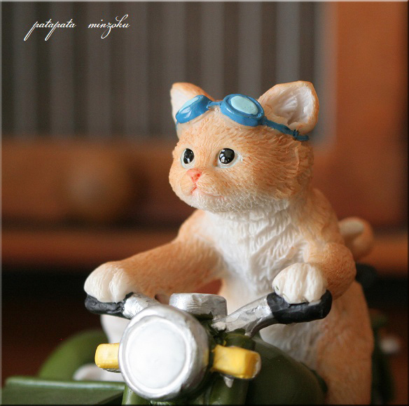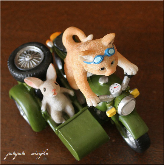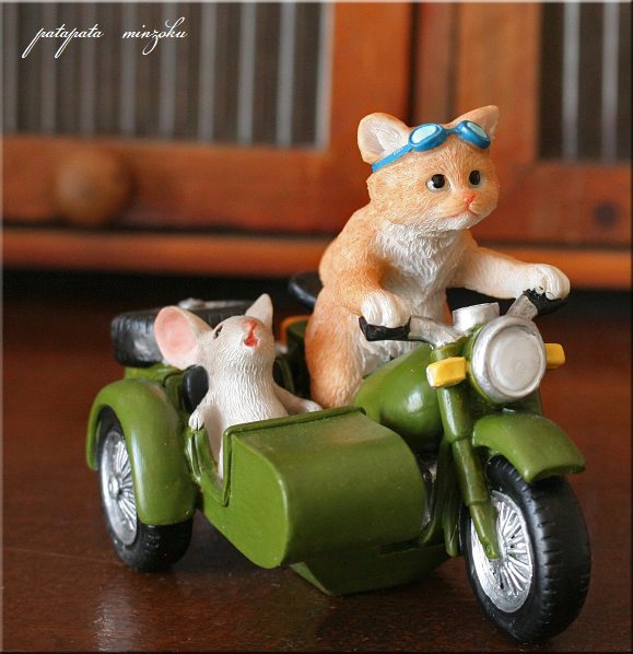バイク と サイドカー 猫 と ねずみ 置物 オブジェ ネコ ねこ キャット パタミン インテリア ディスプレイ