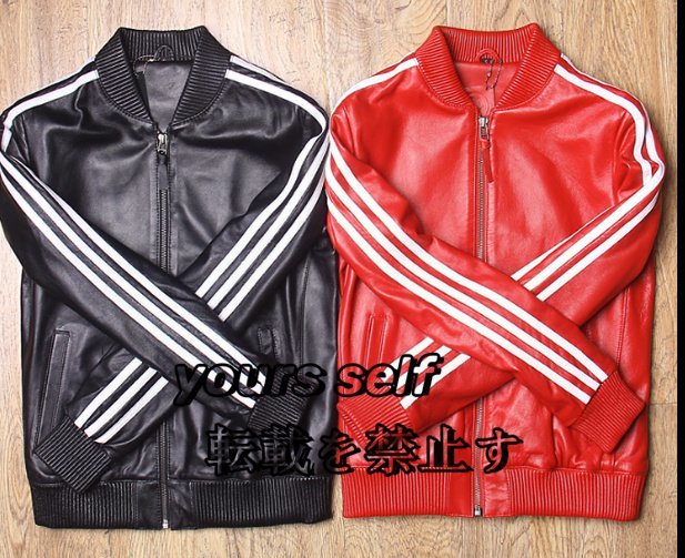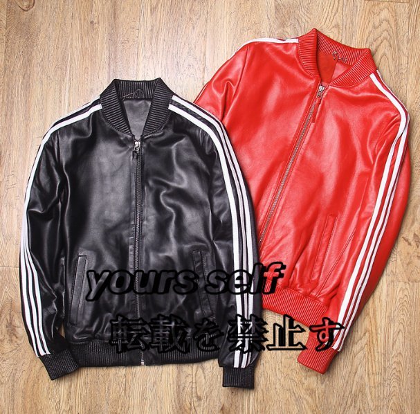 大好評★ シンプルな高級感 サイドライン 羊革 柔らかい レザージャケット メンズ本革ライダース ラム 革ジャン S~4XLサイズ 赤