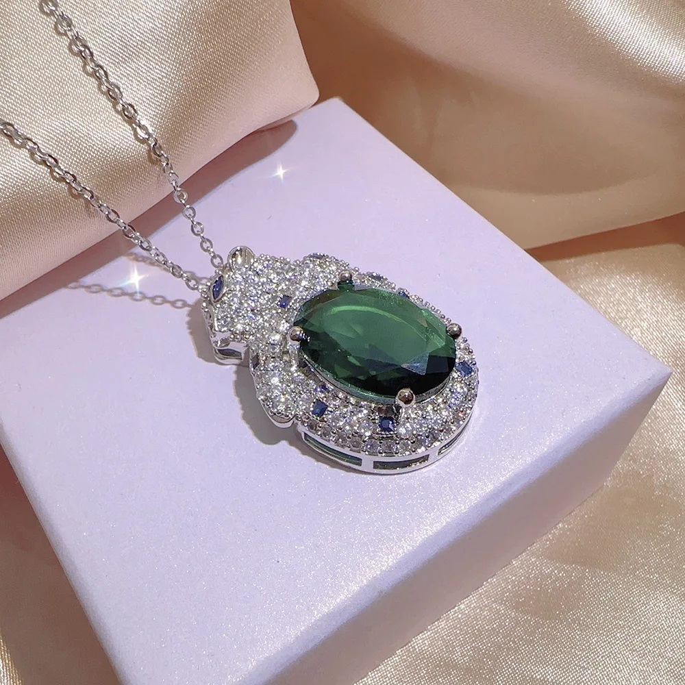エメラルド ネックレス 首飾り すぐにお届けできます。女性のためのヒョウ柄の水玉ジュエリー,925シルバー 結婚 ギフト 評価5.0