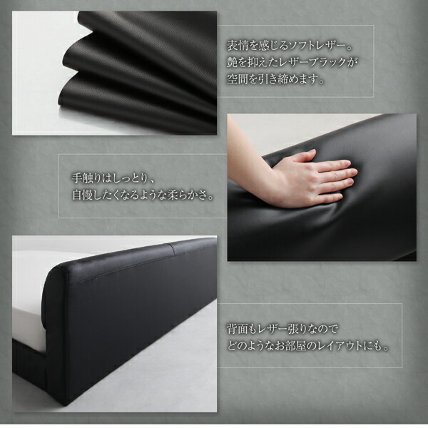 高級感のある モダンデザインレザーフロアベッド ベッドフレームのみ セミダブル