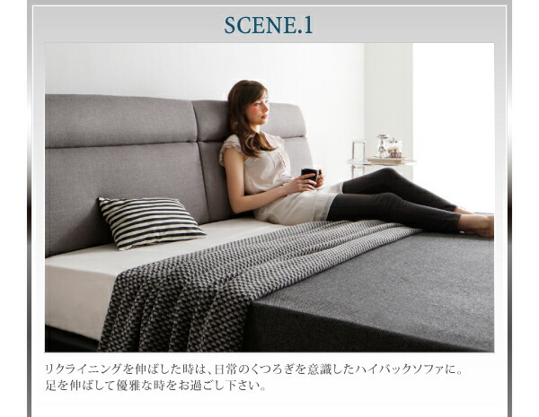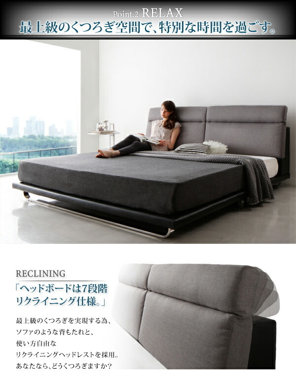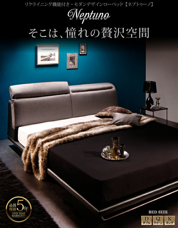 リクライニング機能付き・モダンデザインローベッド ベッドフレームのみ ダブル 組立設置付