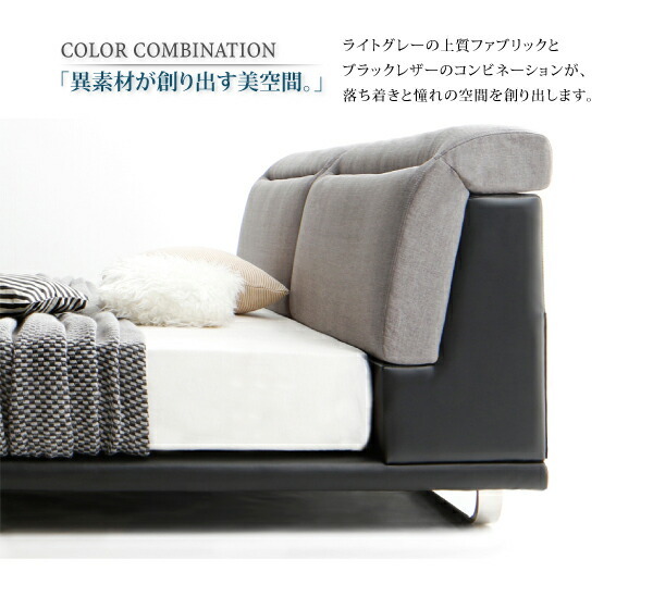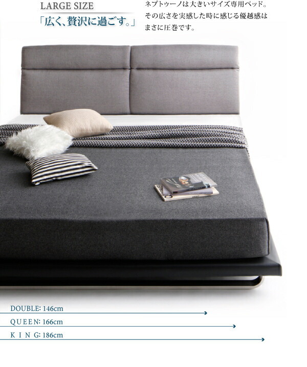 組立設置付き リクライニング機能付き・モダンデザインローベッド Neptuno ネプトゥーノ ベッドフレームのみ ダブル【フレームカラー:ライトグレー×ブラックレザー】です。