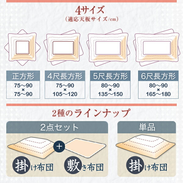 しじら織パッチワークこたつ布団 掛布団&敷布団2点セット 6尺長方形(90×180cm)天板対応