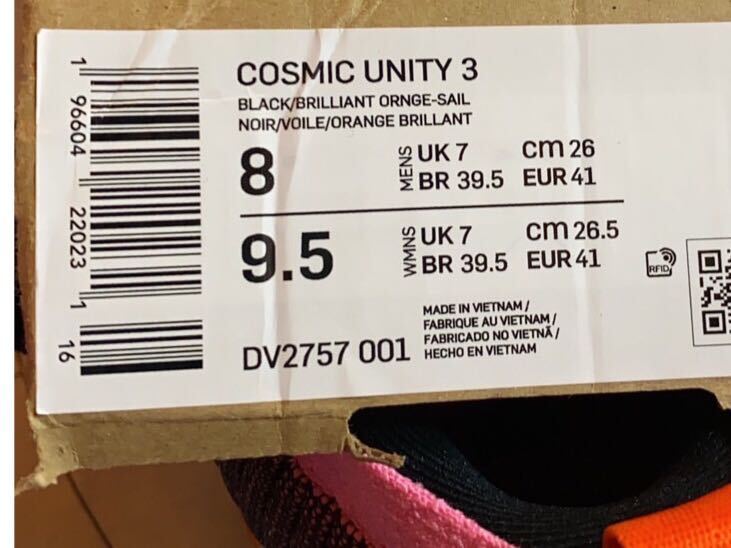 NIKE COSMIC UNITY 3 ナイキ コズミック ユニティ 3"ブラック/セイル/ブリリアントオレンジ"(DV2757-001)黒26cm箱無し