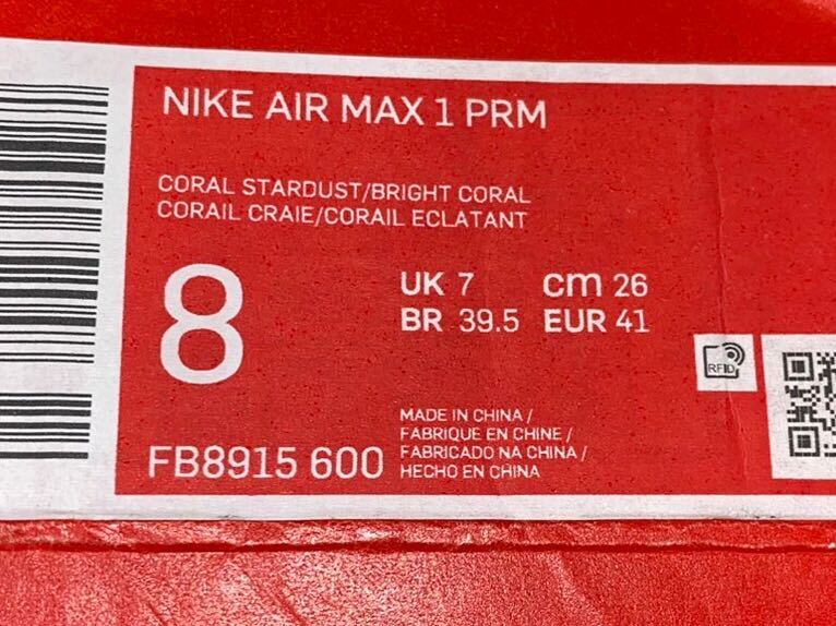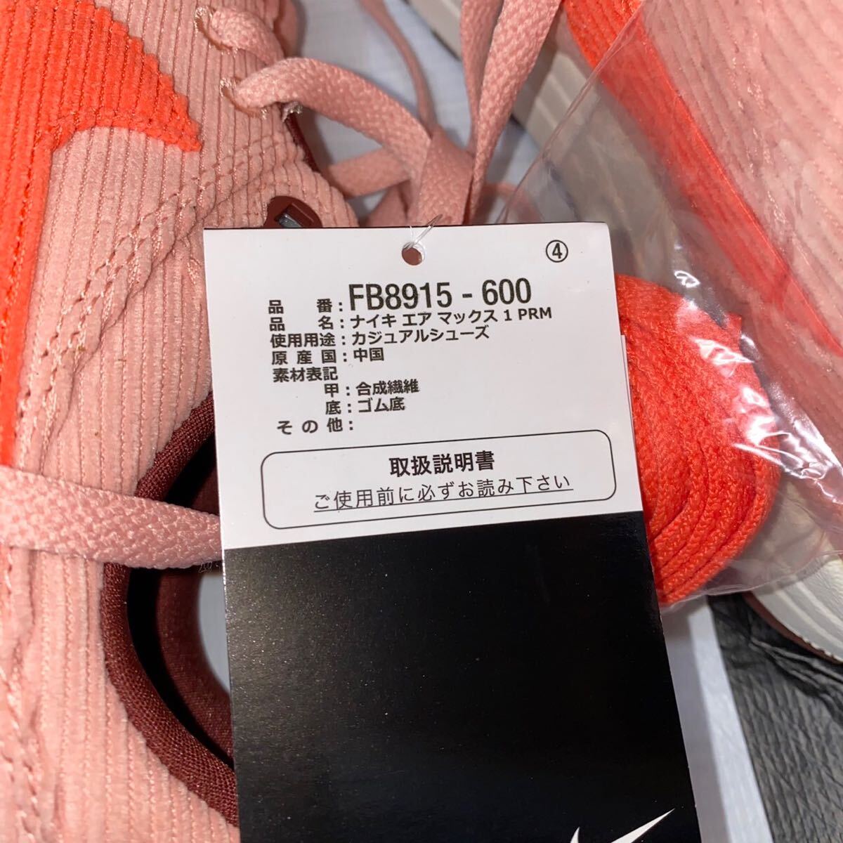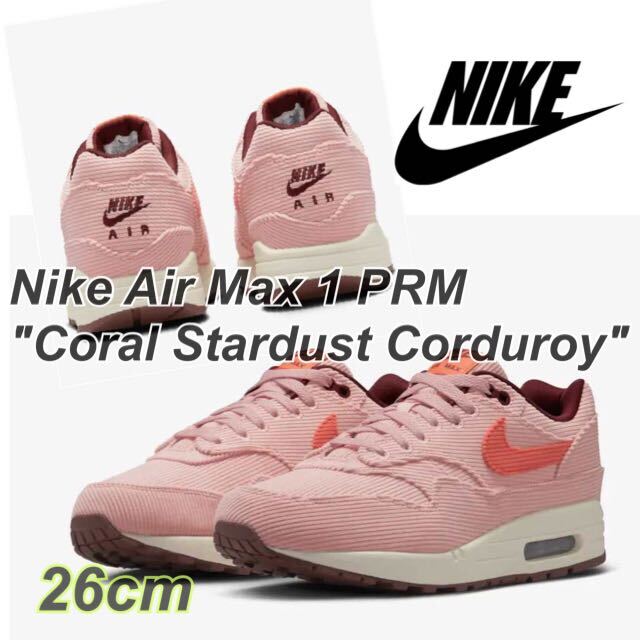 Nike Air Max 1 PRM "Coral Stardust Corduroy"ナイキ エアマックス1 PRM "コーラルスターダスト コーデュロイ"(FB8915-600)ピンク26cm箱無し