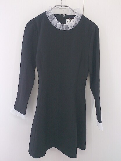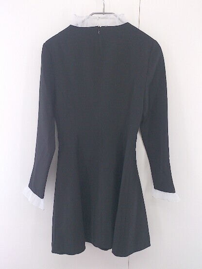 ◇ Vert Berry フリルカラー 長袖 ミニ フレア ワンピース サイズ XS ブラック レディース P