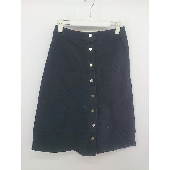 ◇ ehka sopo エヘカソポ フロントボタン 膝下丈 タイト スカート サイズF ダークネイビー系 レディース P