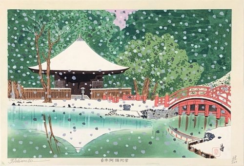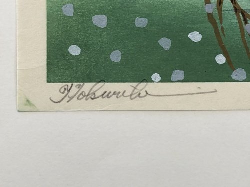 明治35年-平成12年 京都府出身 版画家。京都市立美術工芸学校、京都市立絵画専門学校を首席で卒業後、土田麦僊に師事し、国画創作協会(国展)に参加。 1928年に樗牛賞、1929年に国画賞を受賞。 木版画制作に傾倒し、平塚運一、棟方志功らと版画誌『版』を、京都で麻田弁自らと『大衆版画』を刊行。 版画制作所を設立し、浮世絵方式による量産も行うなど、京都創作版画運動の中心的存在として活躍しました。 勲四等瑞宝章受章。 京都市文化功労賞受賞。 |