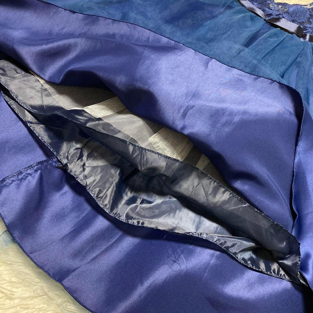 パーティドレス ノースリーブ ロング フレア チュール レース リボン 結婚式 発表会 セレモニー