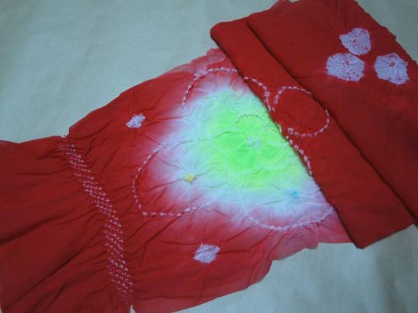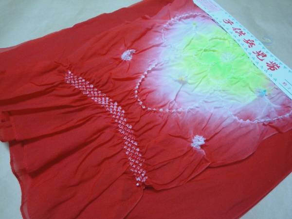 女児★花絞り兵児帯/赤x黄緑【新品】
