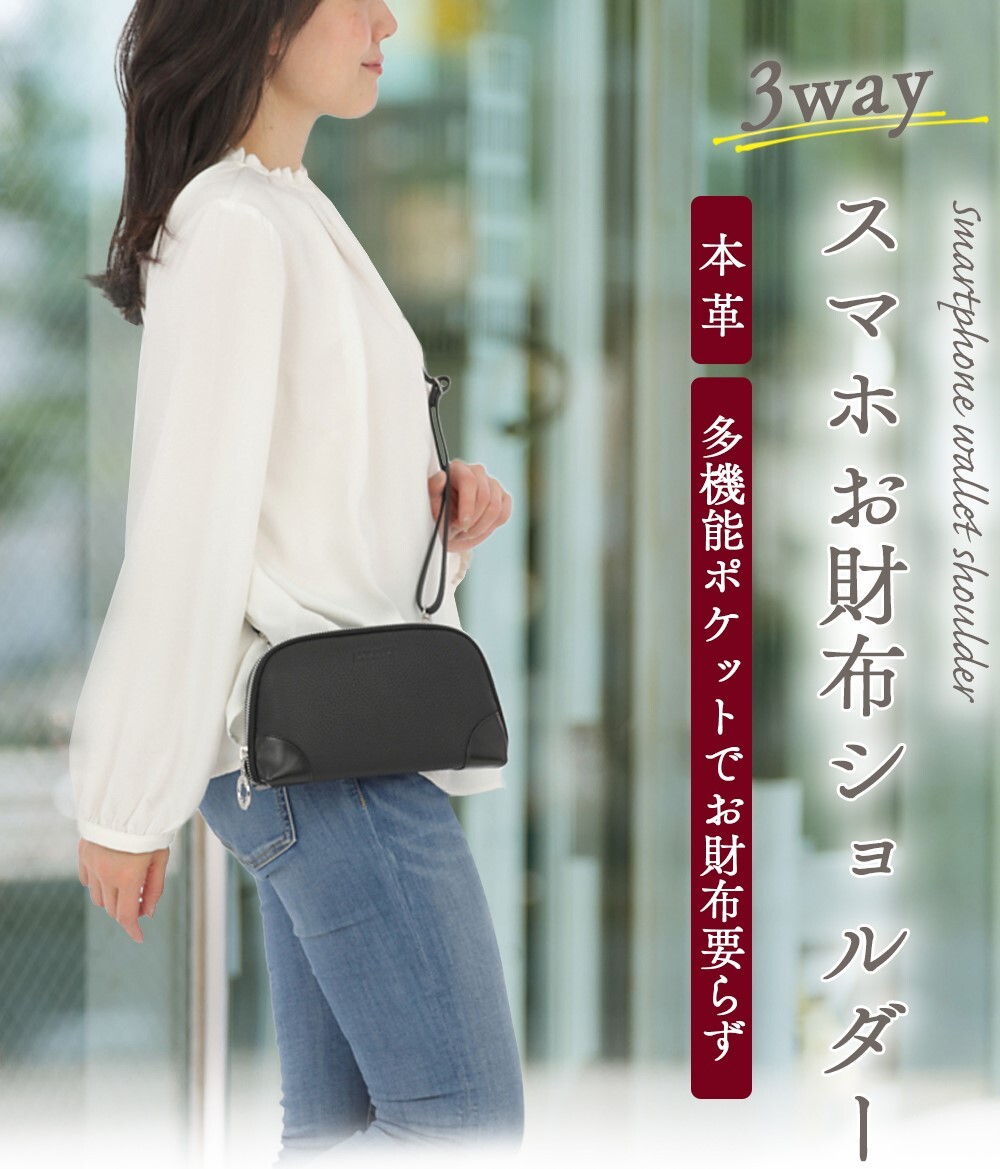 送料無料 新品 Astartia 本革 スマホお財布ショルダー 斜め掛け 多収納ポケット 旅行 パスポート入れ 散歩 通院 軽量 ブラック 黒