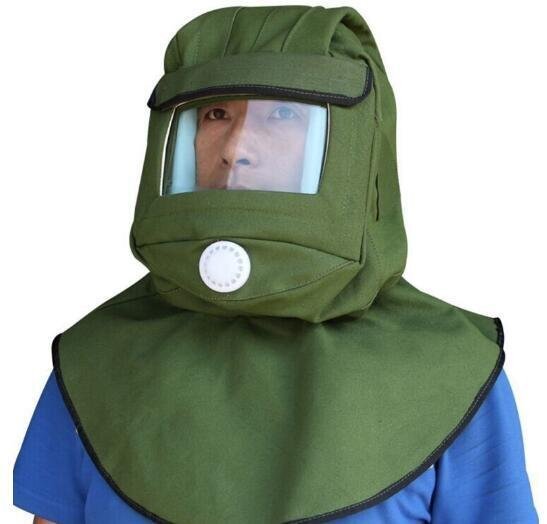 B0738上質キャンバス サンドキャップ 防塵 塗料 工業用 ダスト ヘルメット 砂 ブラストフード プロテクター マスク 研削 ショールキャップ