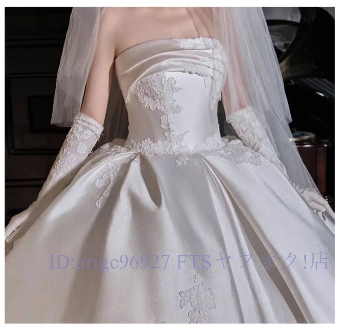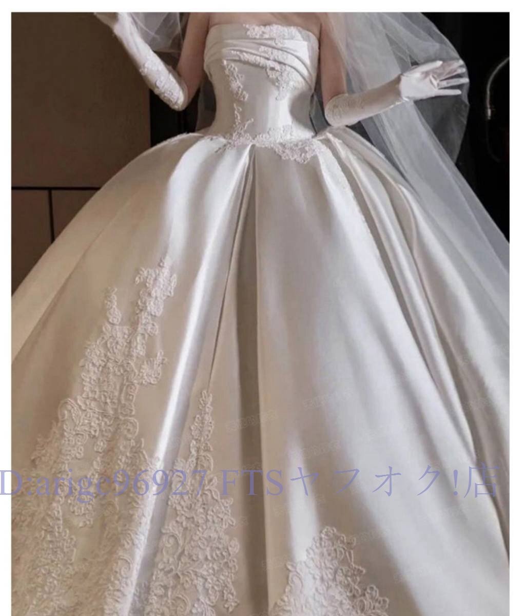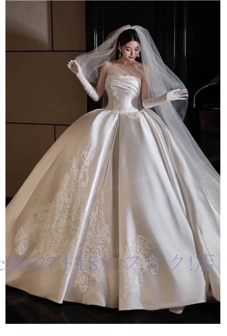 B0906☆新品【パニエグローブベール付】高級サテン生地 ウエディングドレス カラードレス 花嫁 結婚式 披露宴