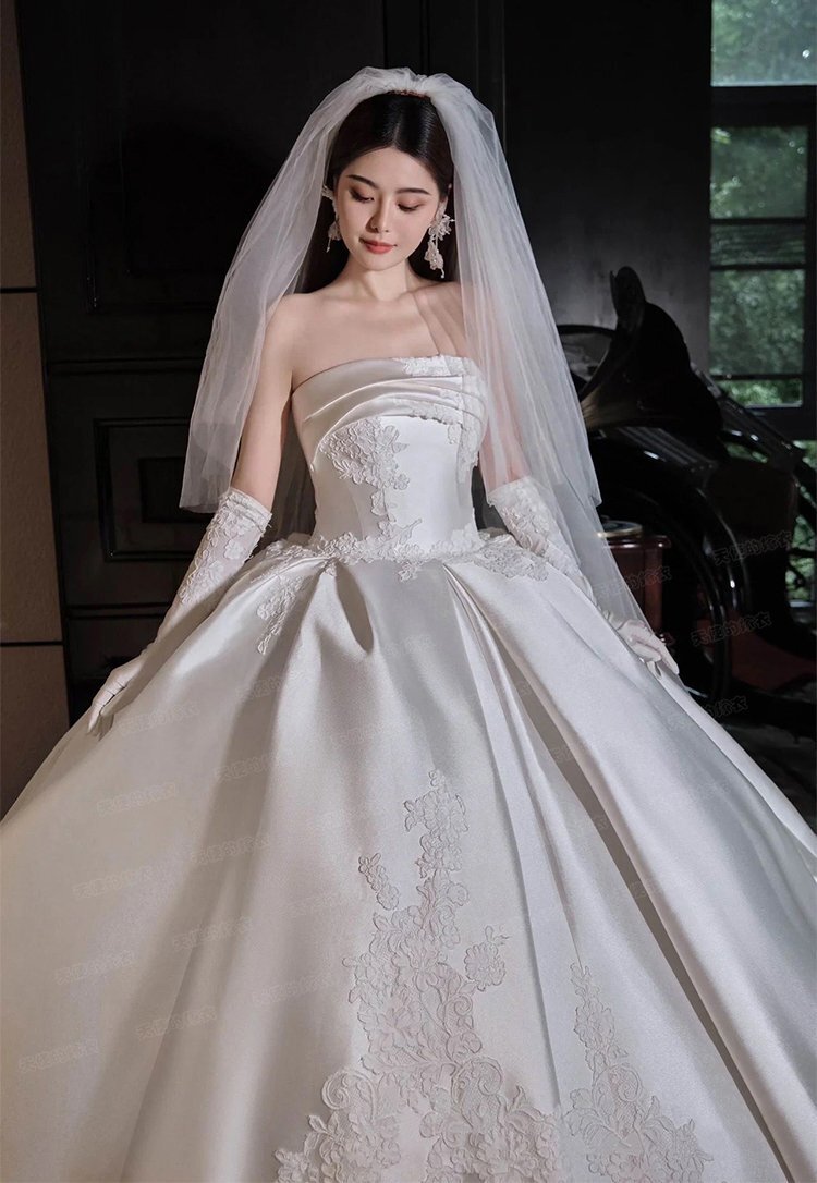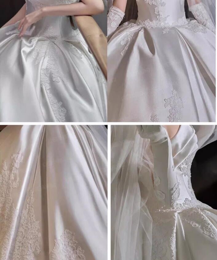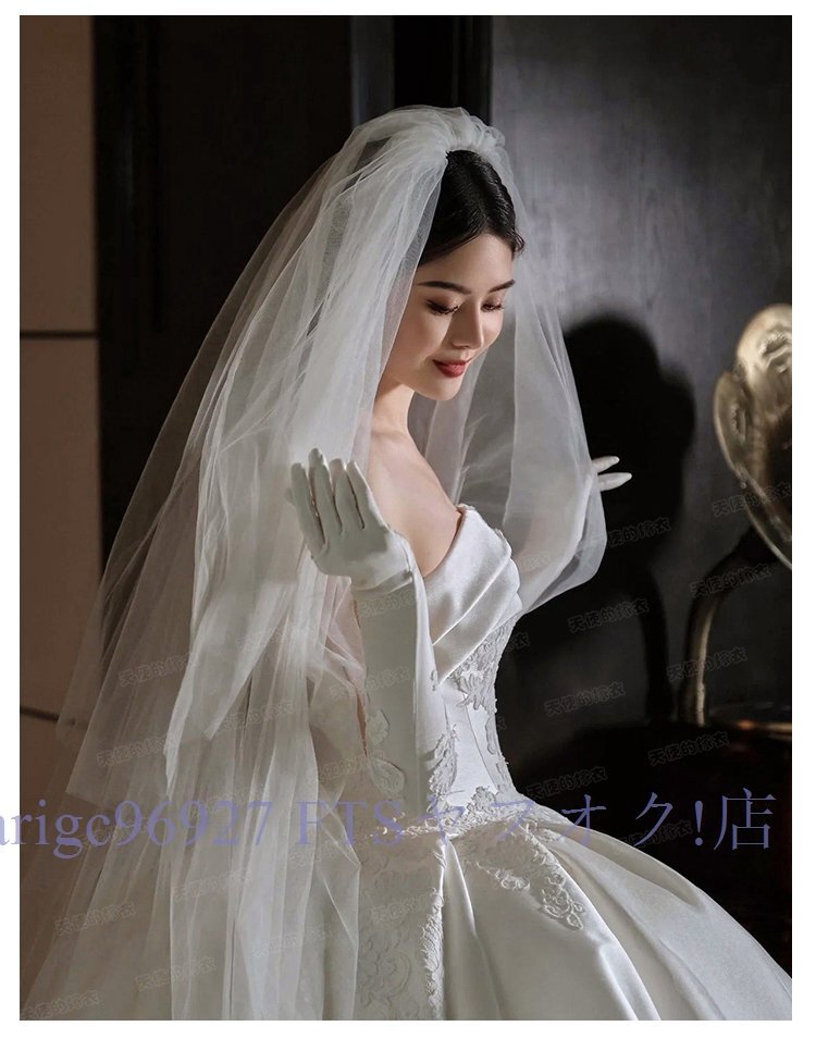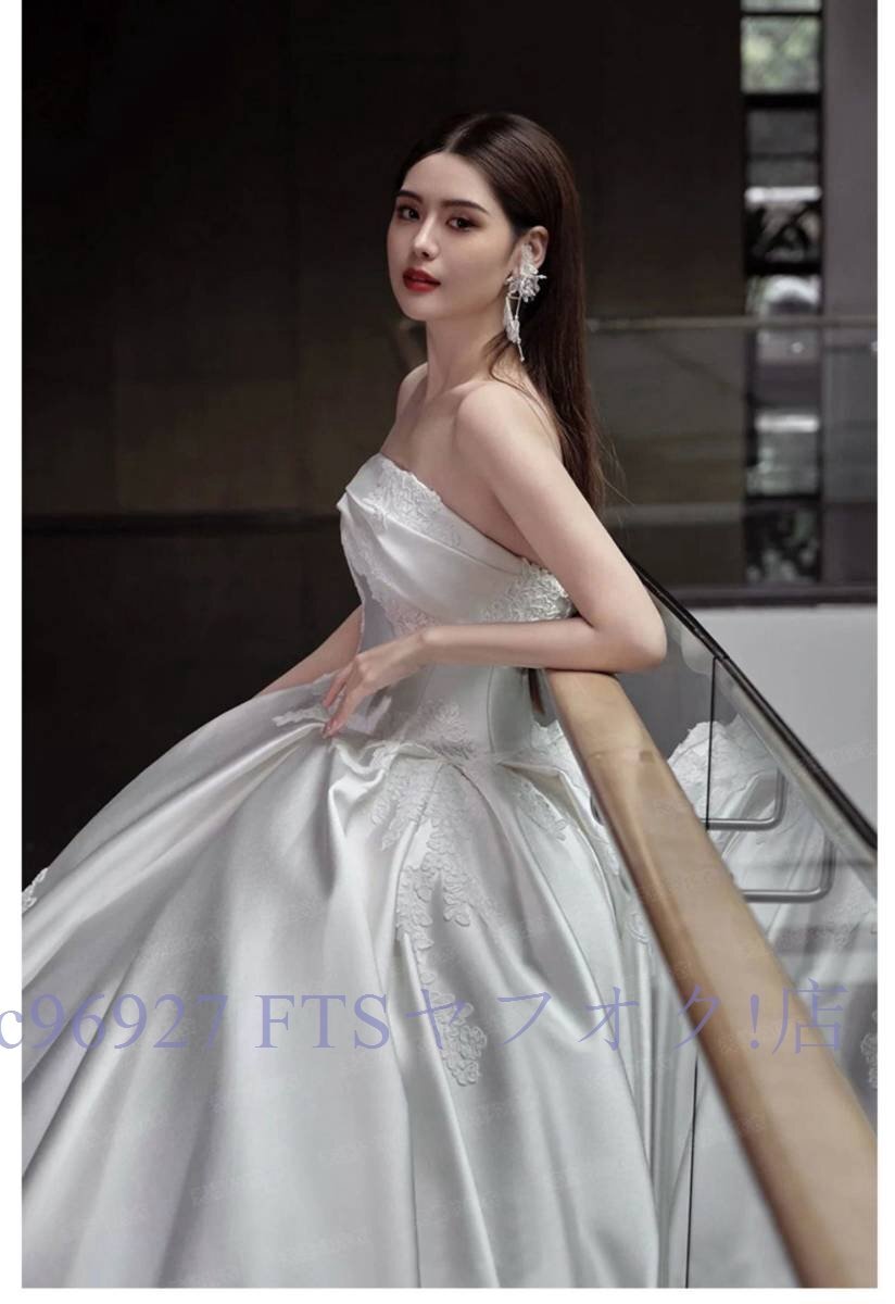 B0906☆新品【パニエグローブベール付】高級サテン生地 ウエディングドレス カラードレス 花嫁 結婚式 披露宴